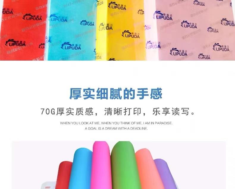 pink 70g a pack of 500 sheets, light blue 70g a pack of 500 sheets, light yellow 70g a pack of 500 sheets, lig...