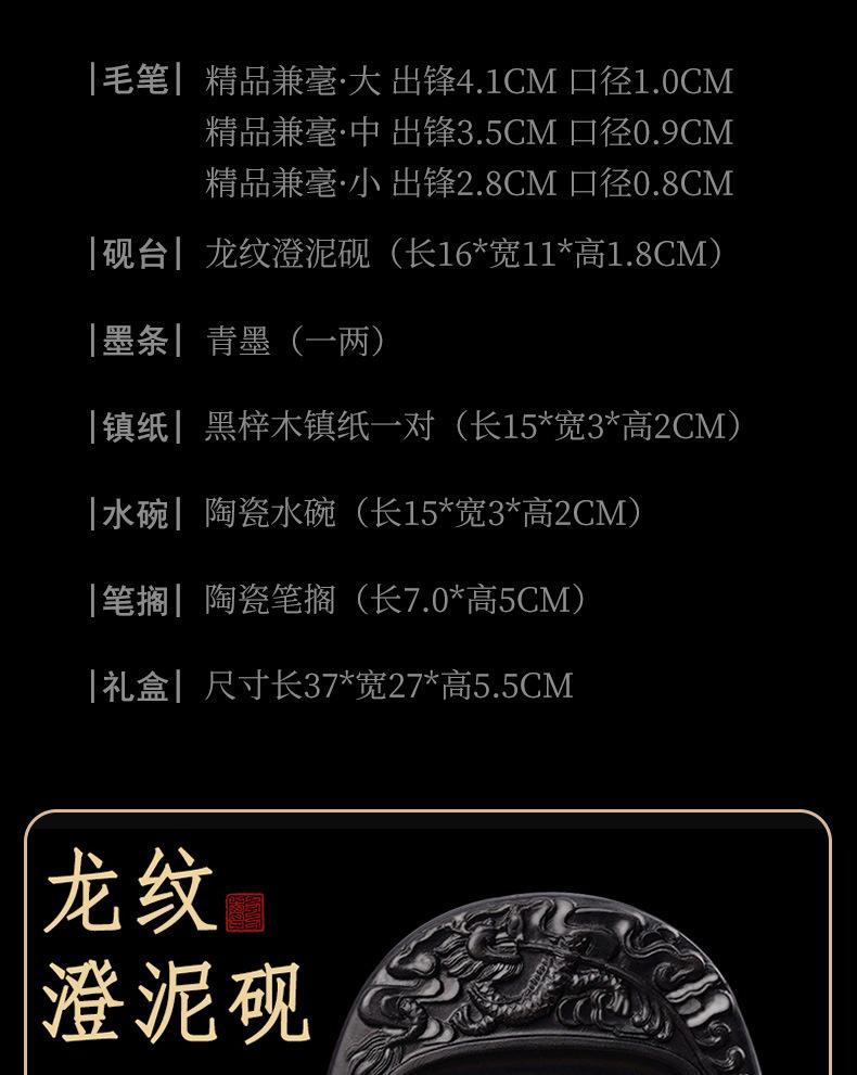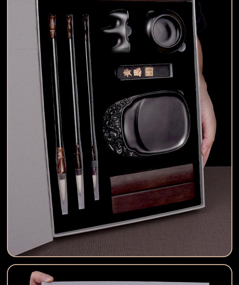 Caja de regalo con suministros de caligrafía, kit Los cuatro tesoros de la sala de escritura, papel de tinta de alta calidad, caja de regalo con tintero, juego de pinceles