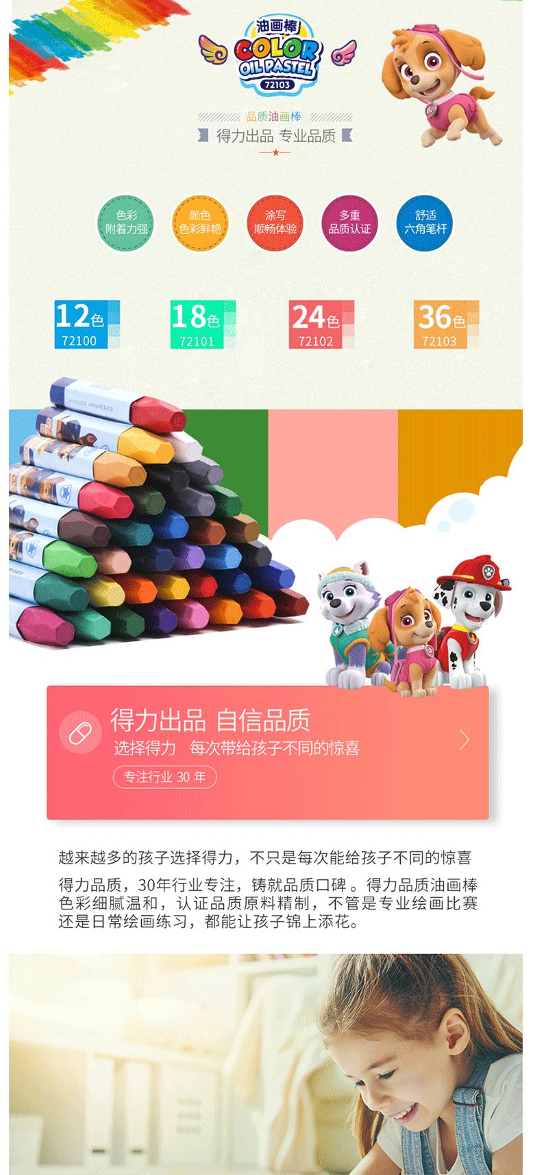 Barra de pintura al óleo Deli, 36 colores, 72103, crayón, suministros de pintura artística, bolígrafo de grafiti para estudiantes, no tóxico
