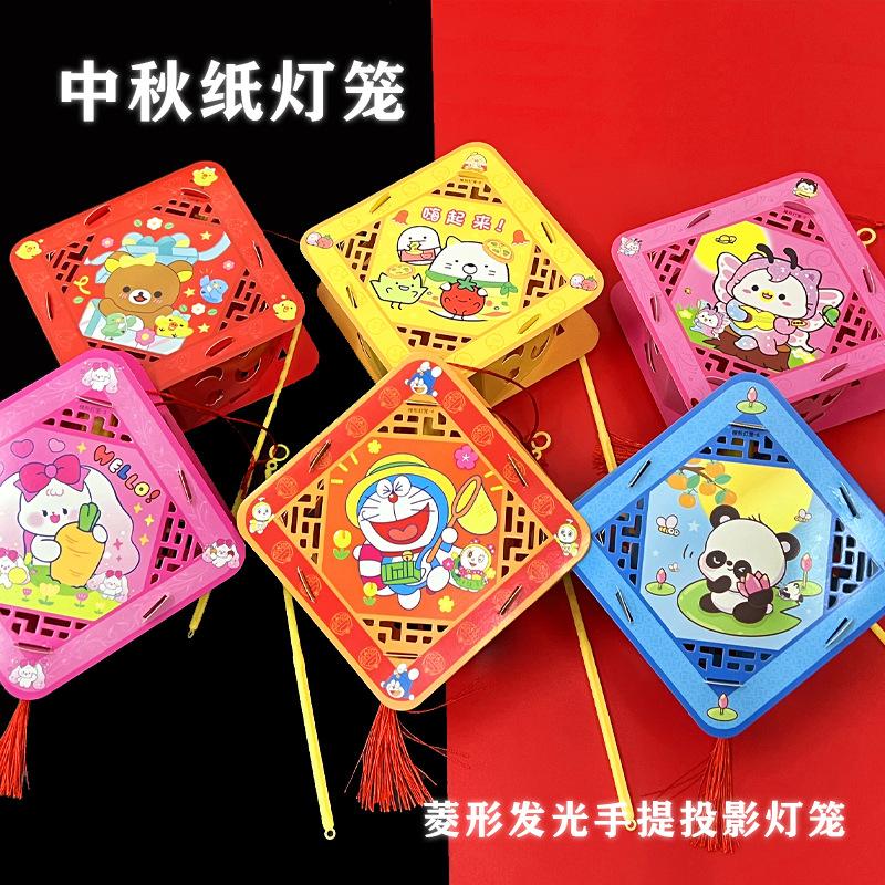Festival del Medio Otoño Linterna portátil para niños conejo de dibujos animados jardín de infancia linterna luminosa hecha a mano festival Día Nacional paquete de materiales linterna de papel