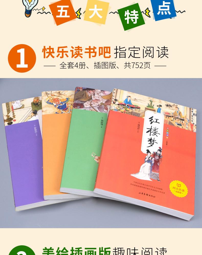 Libro al por mayor cuatro libros famosos versión para estudiantes de escuela primaria original genuino grado 5 segundo volumen libros extracurriculares feliz barra de lectura