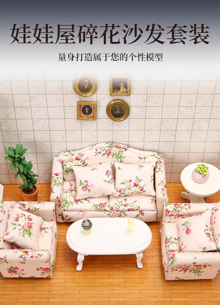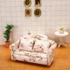 1:Casa de muñecas de 12 pulgadas, minimuebles para casa de muñecas, modelo OB11, tela en polvo, pequeño conjunto de sofá floral para sala de estar
