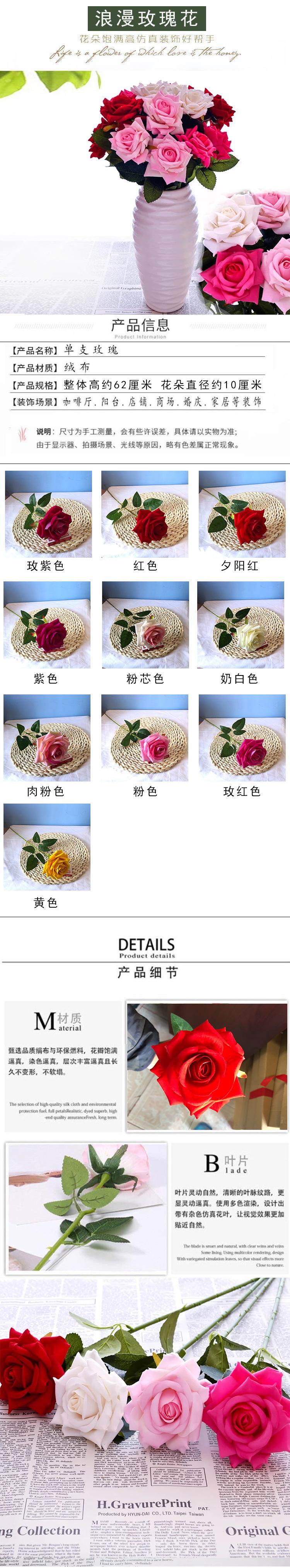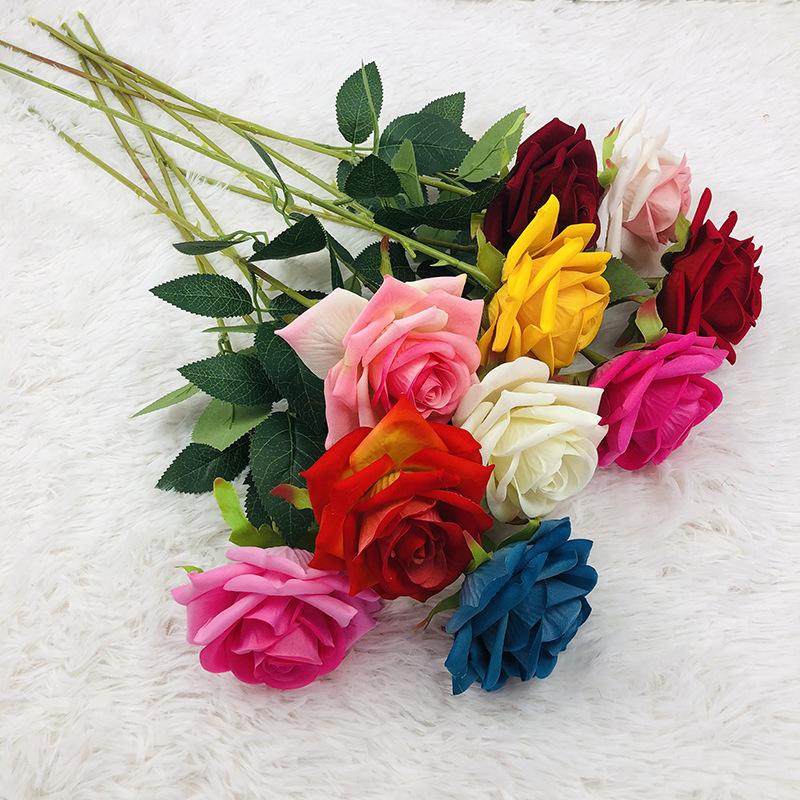 Rosa de Terciopelo Rama Única Flor Rosa Decoración de Mesa para Sala de Estar en Casa Salón de Bodas Fiesta Planta Verde Alta Simulación