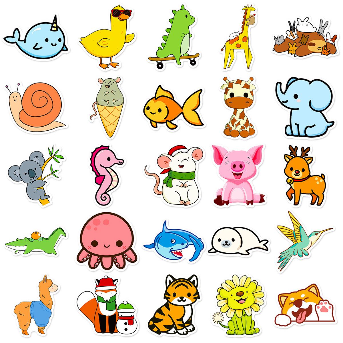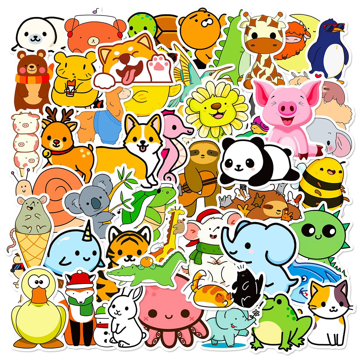 50 pegatinas transfronterizas para niños, dibujos animados de grafiti, animales bonitos, bricolaje, taza de agua, maleta, pegatinas para bolsa, venta al por mayor