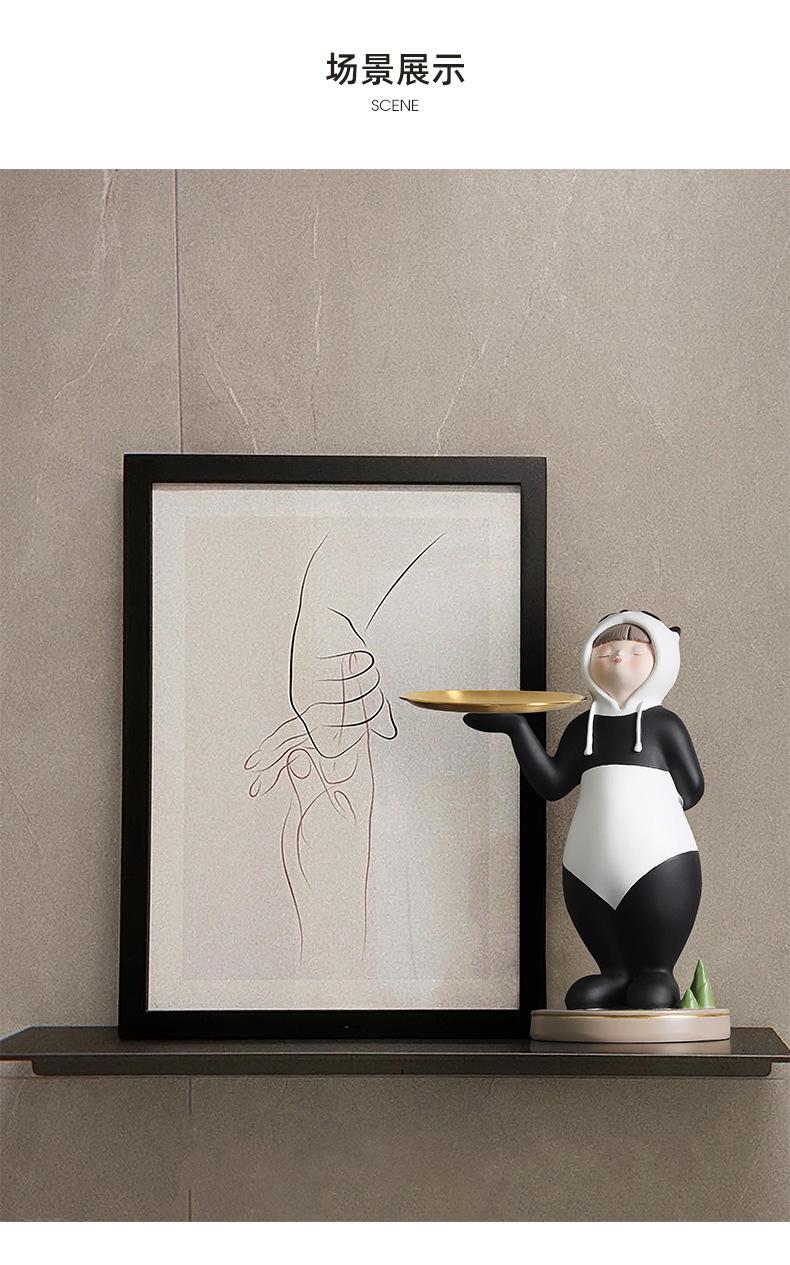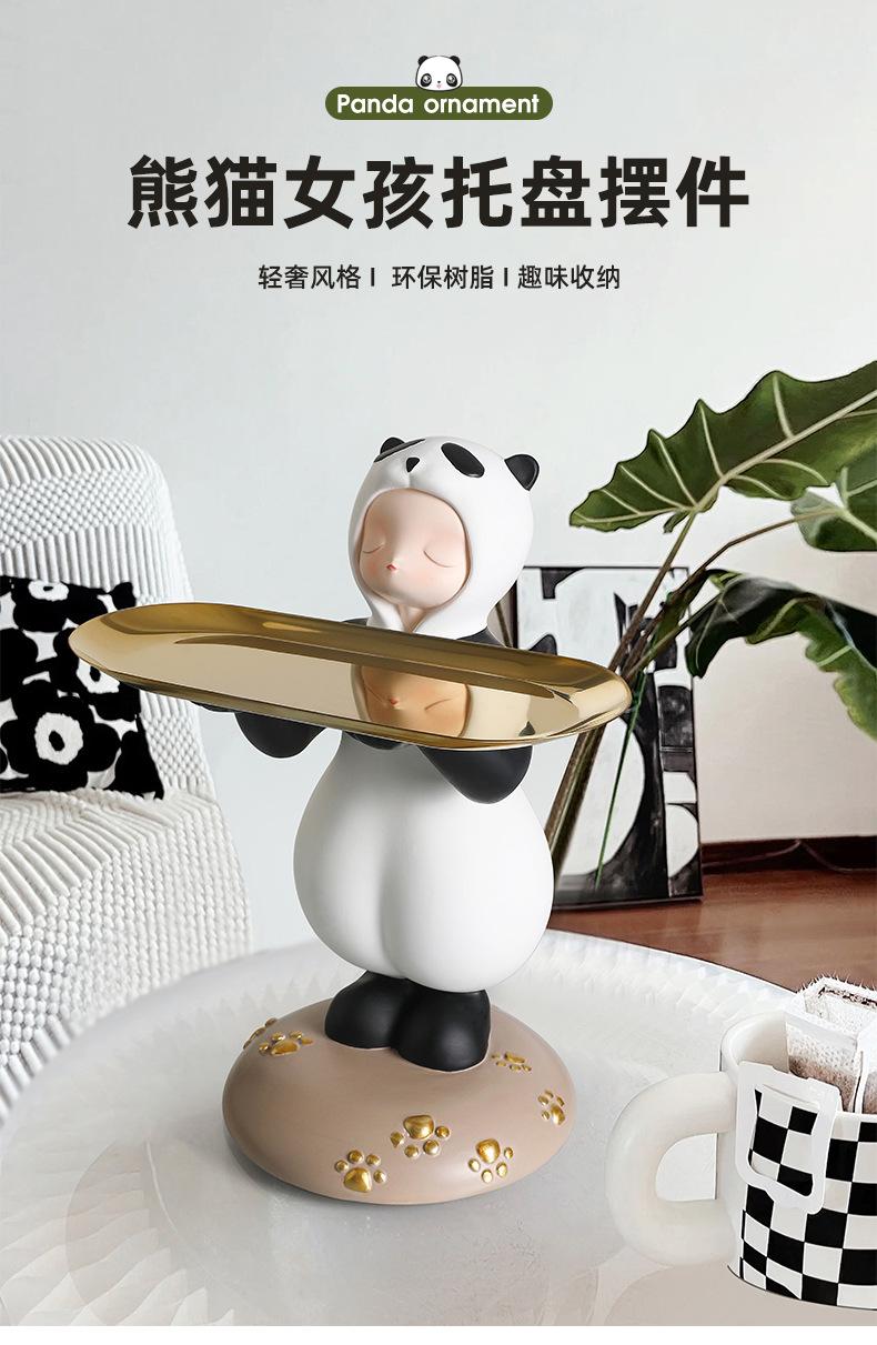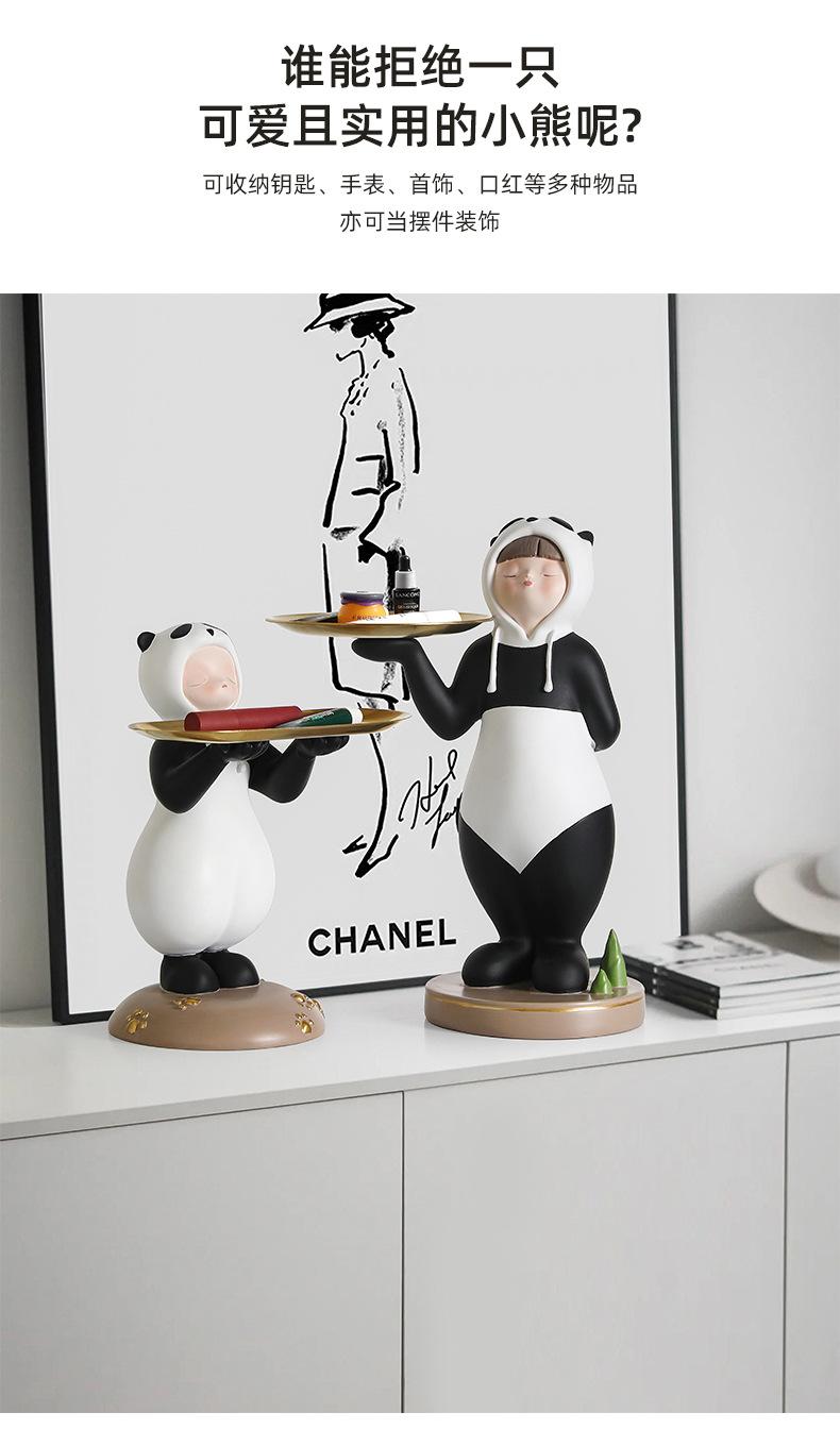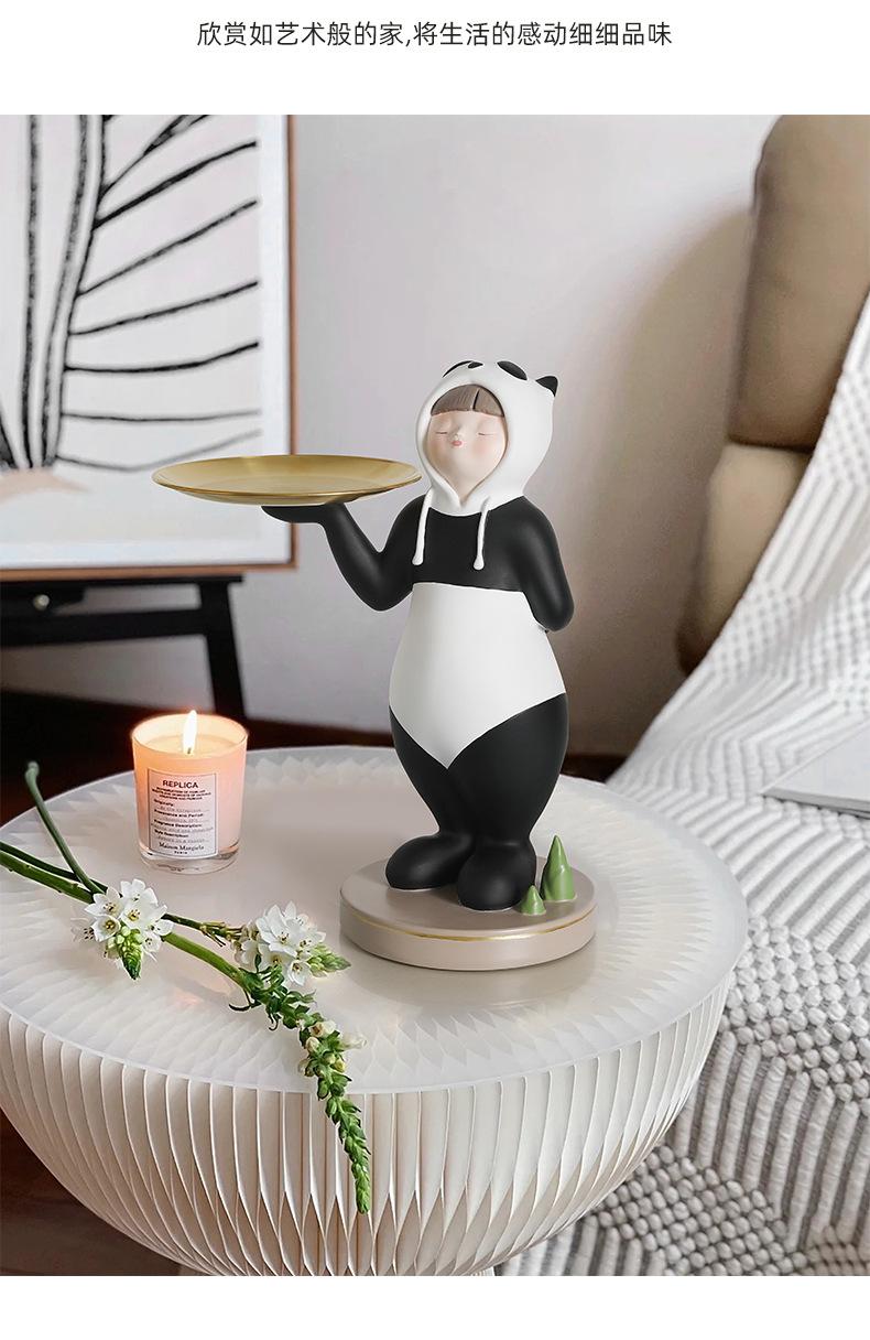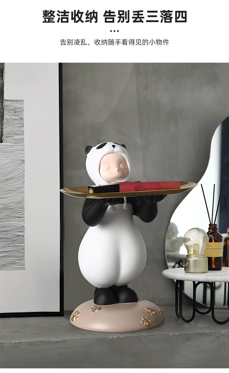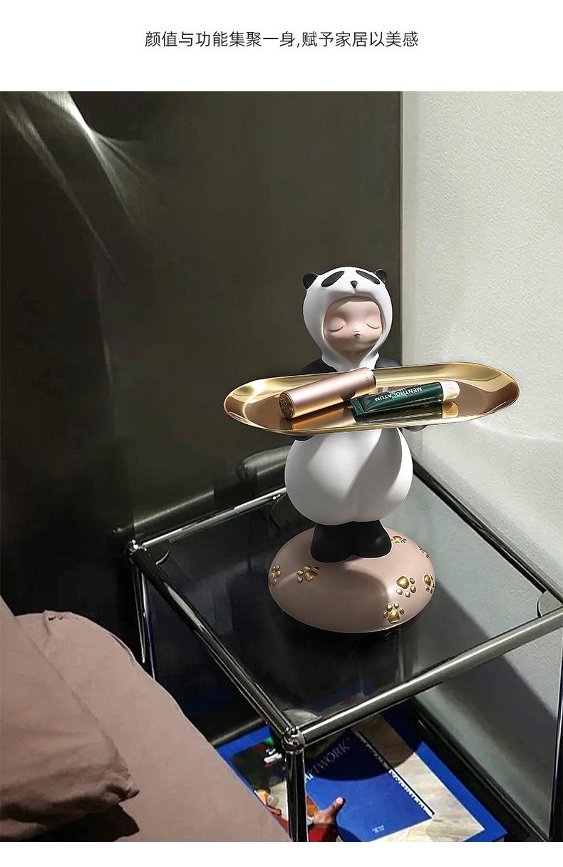 Adornos creativos para guardar llaves de entrada con forma de panda para niña, venta al por mayor, bandeja para sala de estar, decoraciones suaves de resina para el hogar