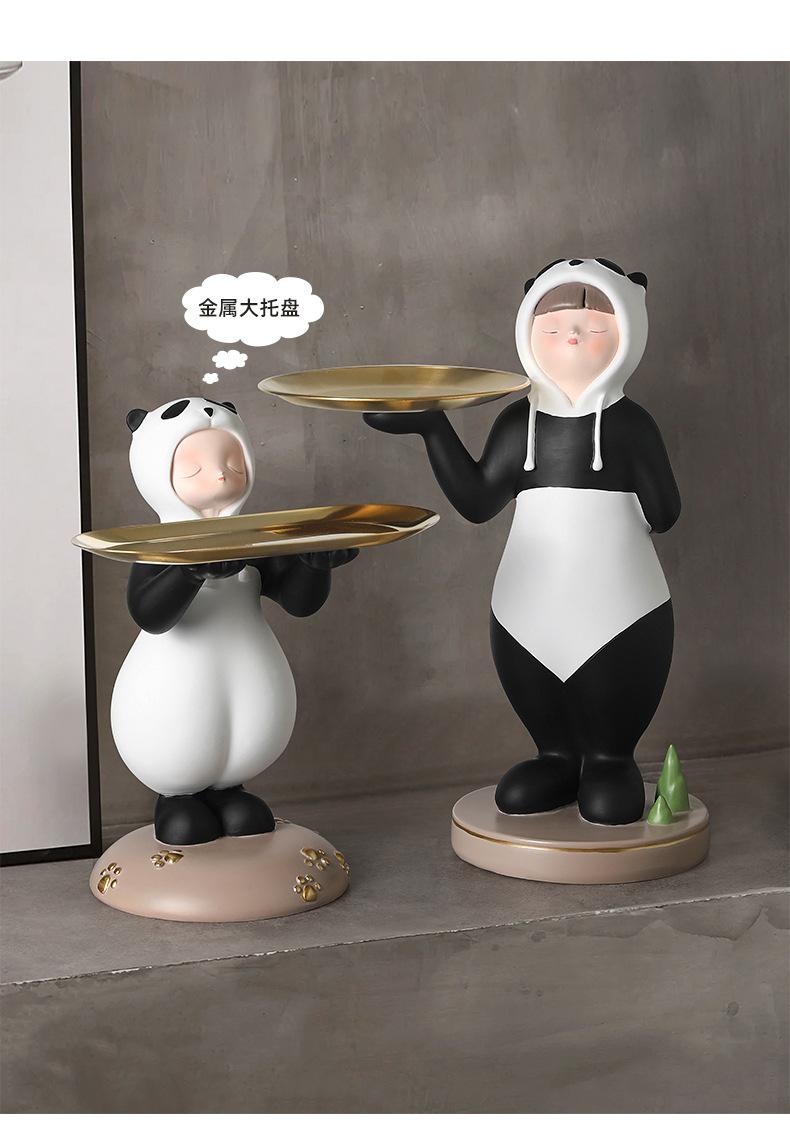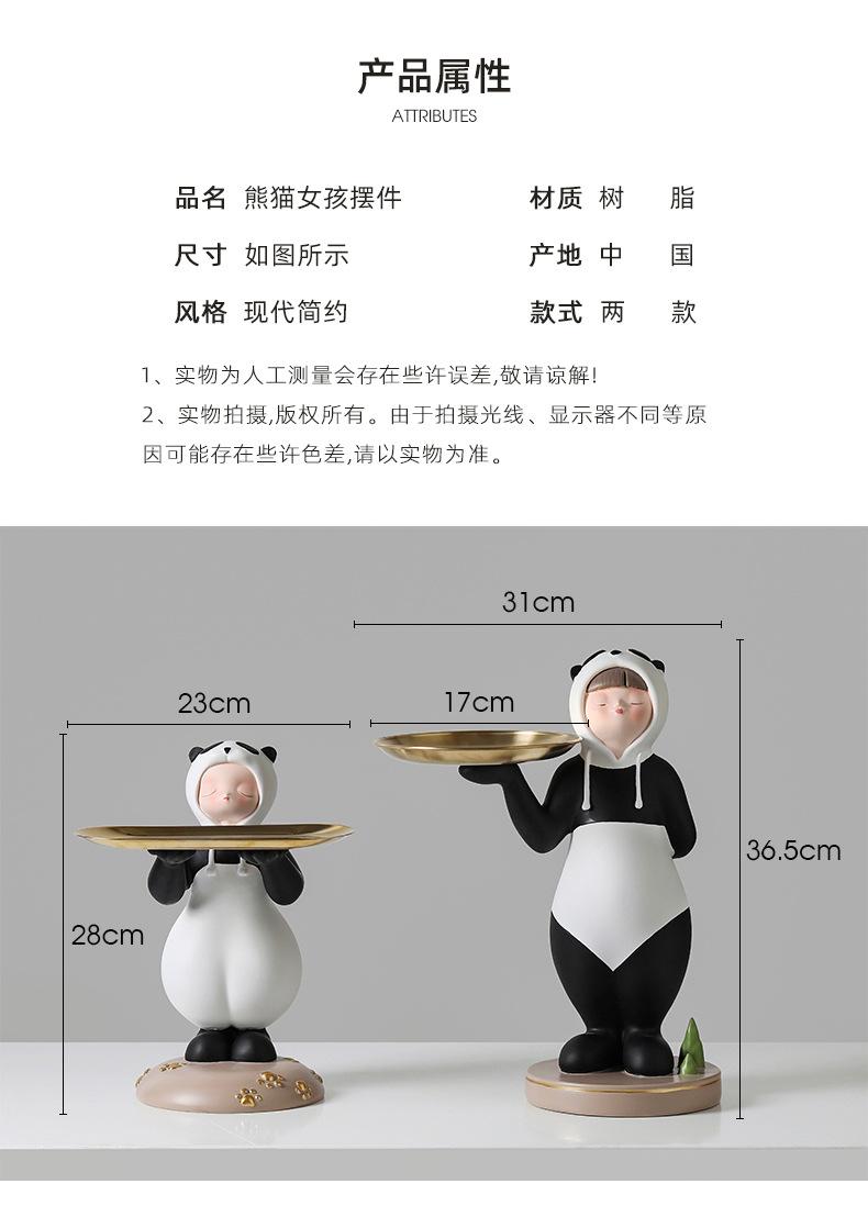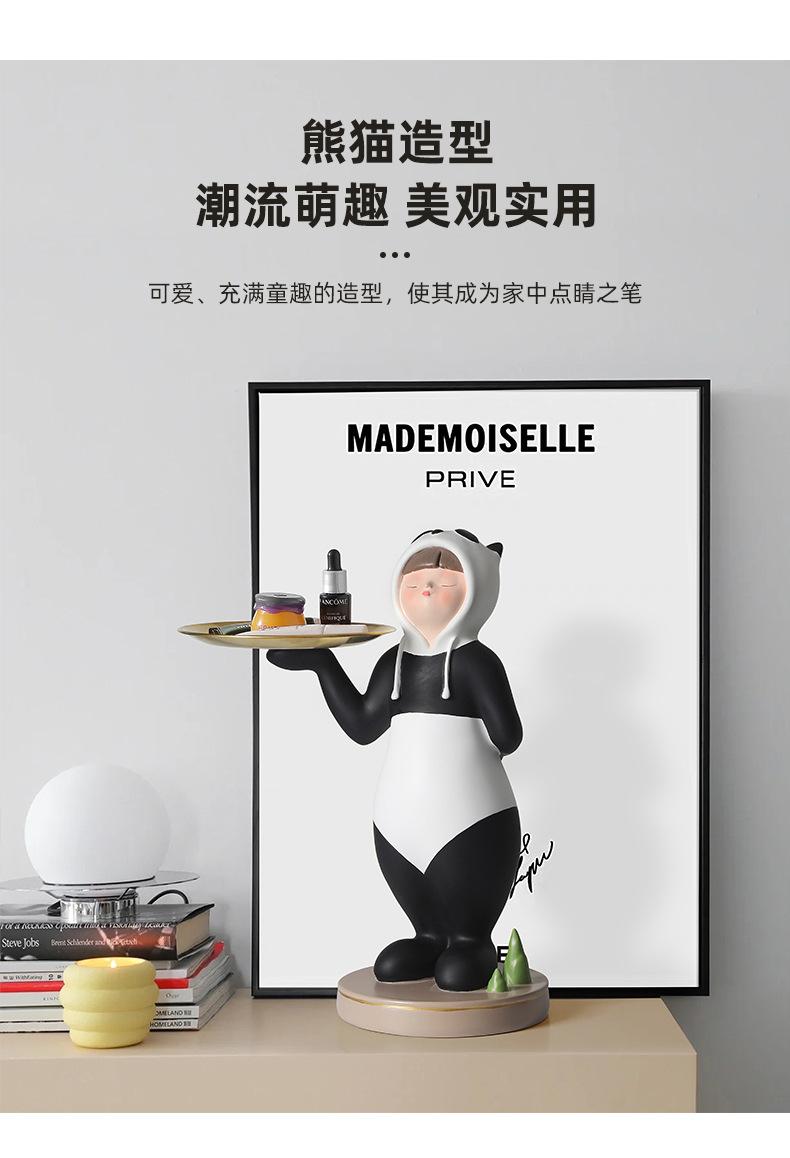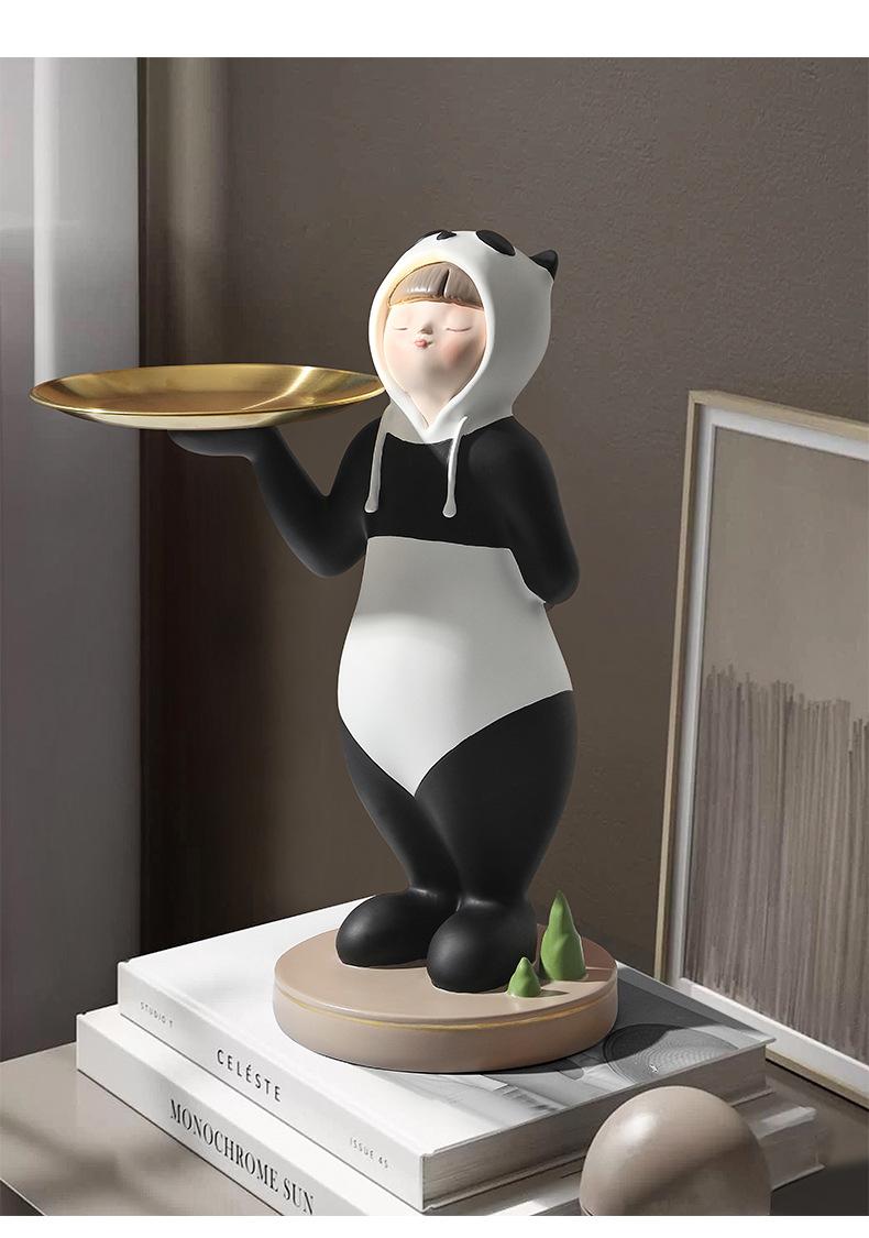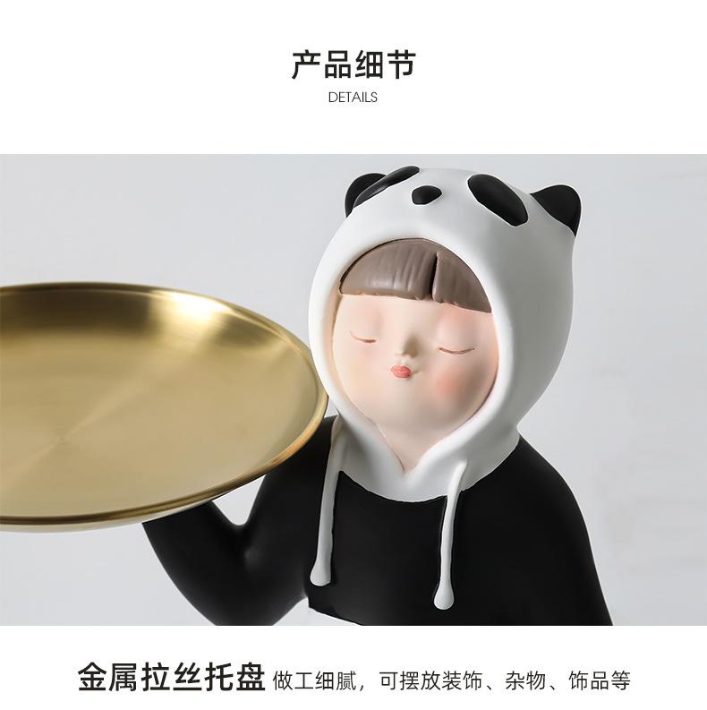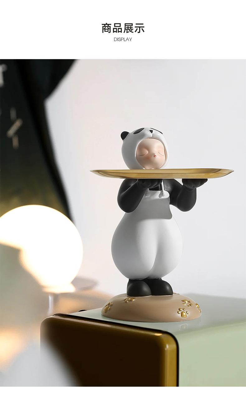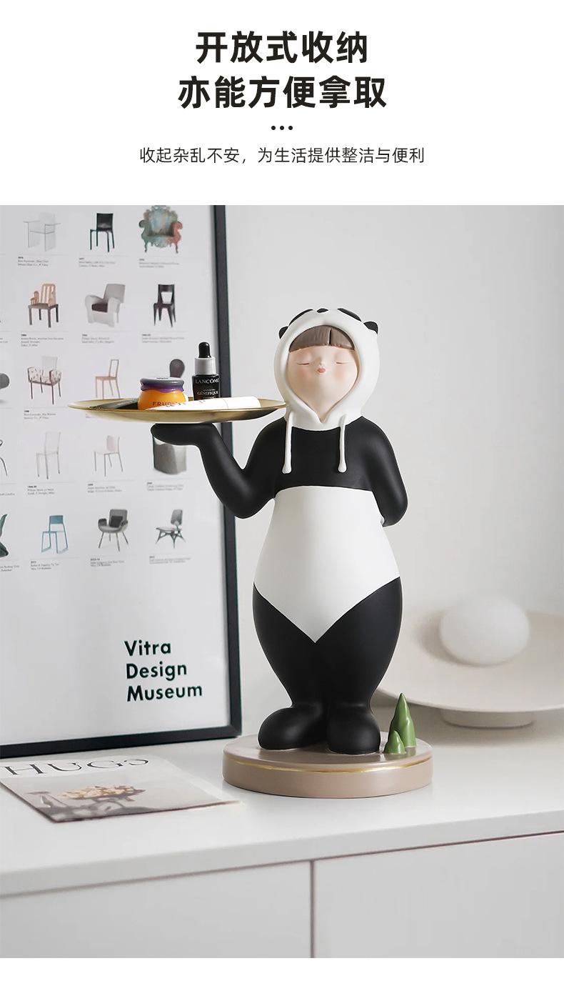 Adornos creativos para guardar llaves de entrada con forma de panda para niña, venta al por mayor, bandeja para sala de estar, decoraciones suaves de resina para el hogar