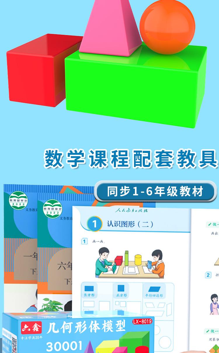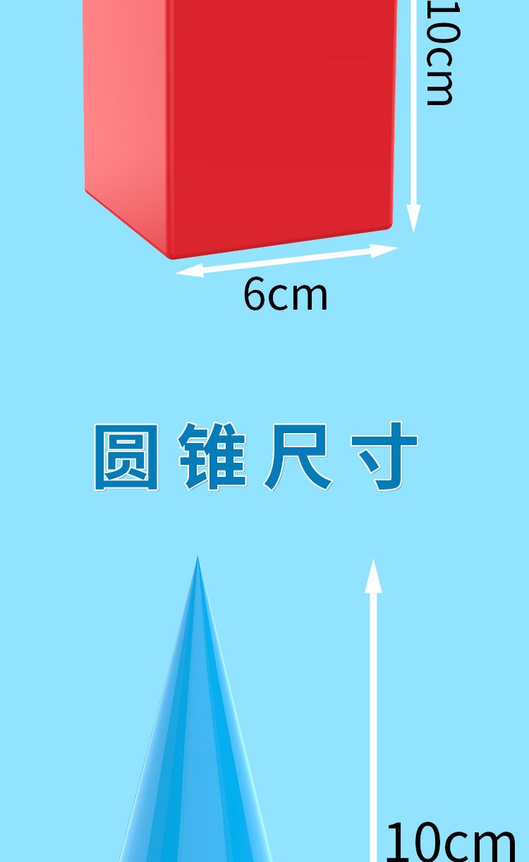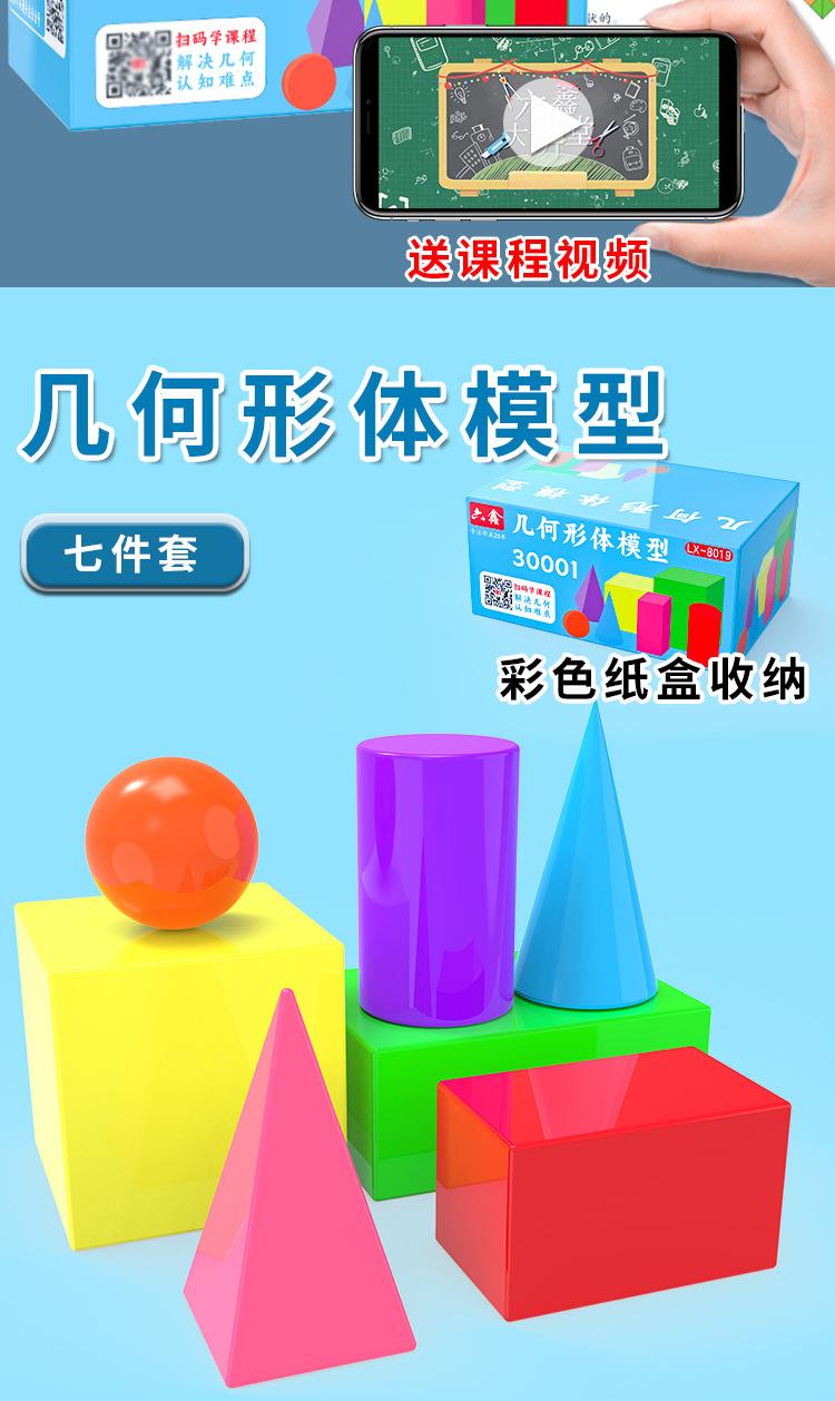 Modelo de geometría tridimensional. Los profesores muestran un gran conjunto de 7 piezas de modelos de geometría tridimensional, material didáctico para matemáticas de primaria.