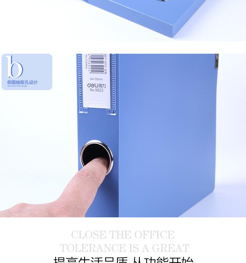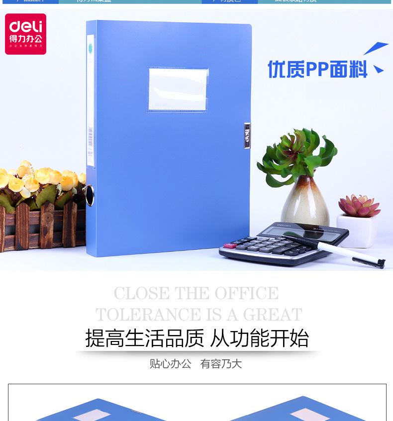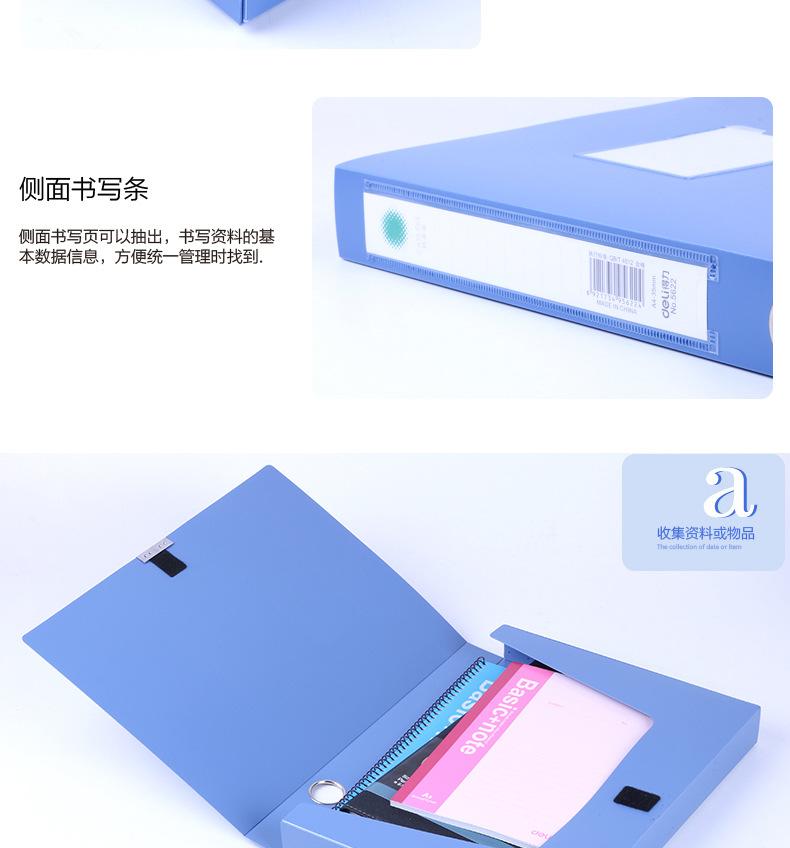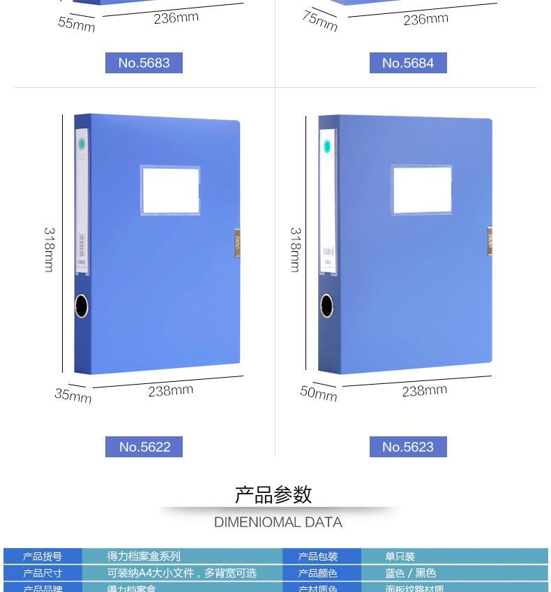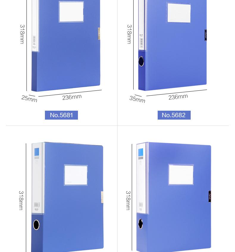 Deli 5683 caja de archivo A4 caja de archivo de plástico caja de datos caja de documentos oficiales caja de archivo de 3 pulgadas ancho de lomo 5.5cm |