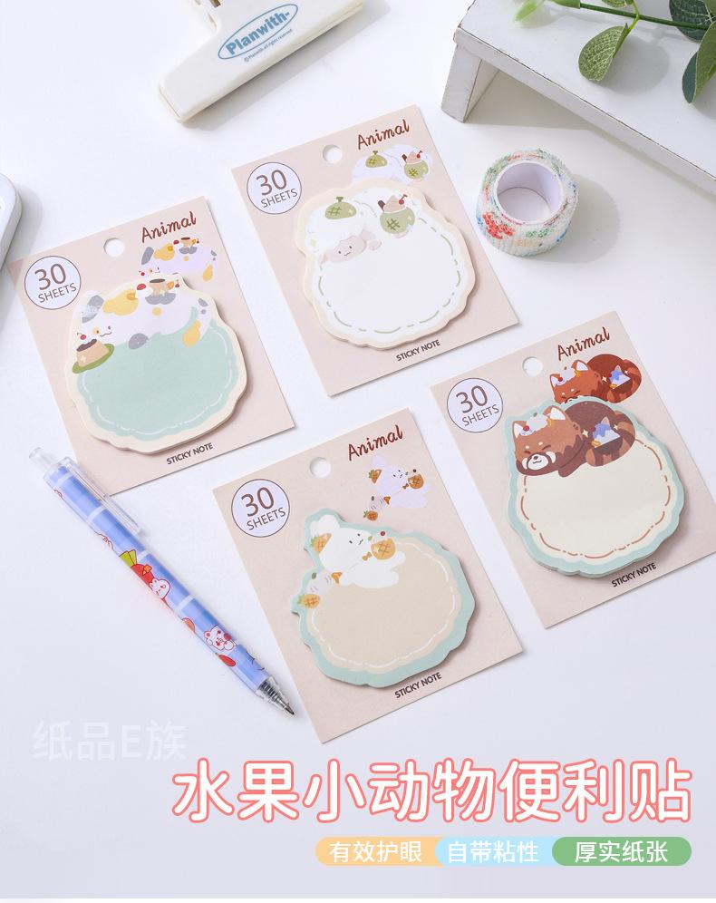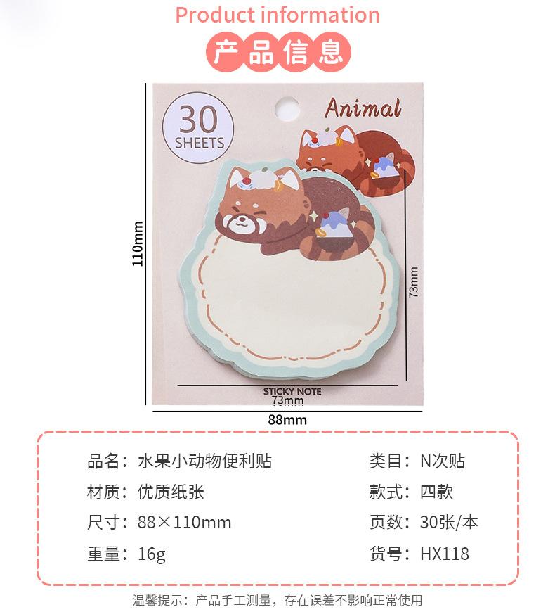Nuevas notas adhesivas creativas para estudiantes, papel de notas, buenas notas, pegatinas de dibujos animados de frutas y animales, pegatinas de regalo al por mayor