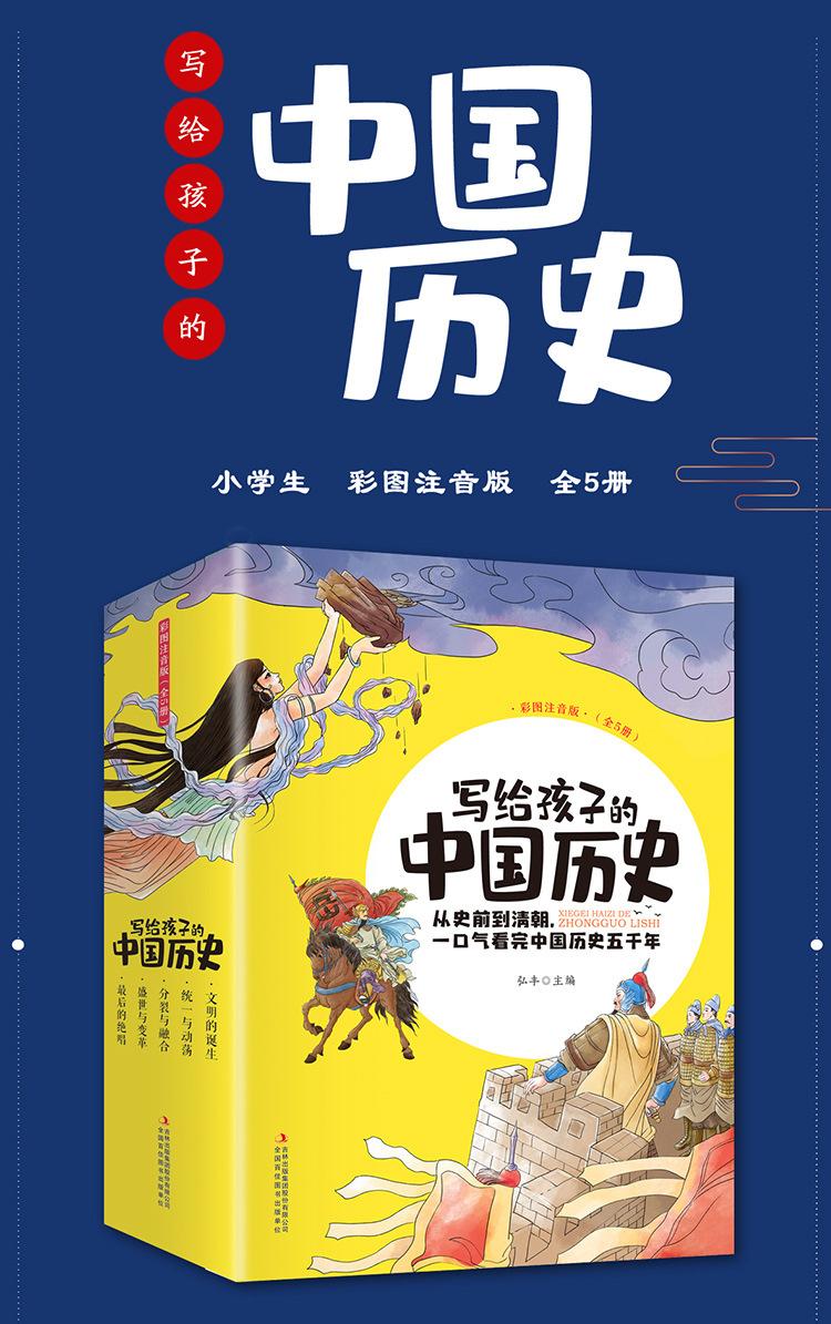 Un conjunto completo de 5 libros de historia china para niños, imágenes en color y notas, libros extracurriculares para estudiantes de primaria durante cinco mil años en China.