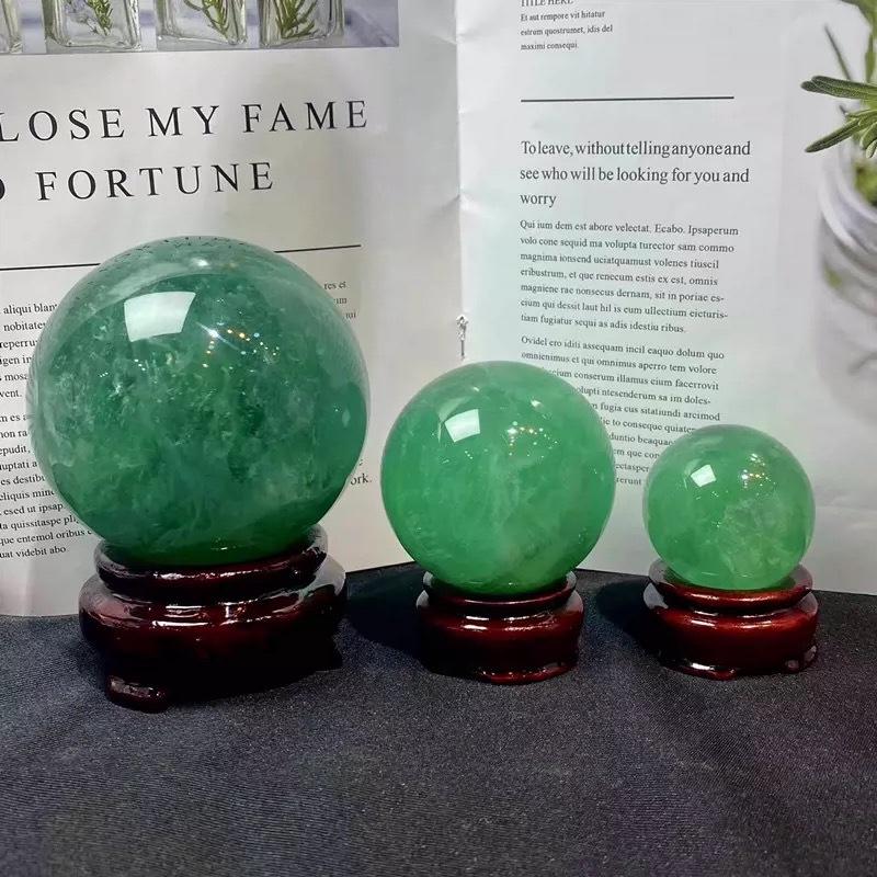 Bolas de cristal de fluorita verde pulidas de piedra natural cruda, suministro de fábrica, adornos para sala de estar, oficina y decoración del hogar.