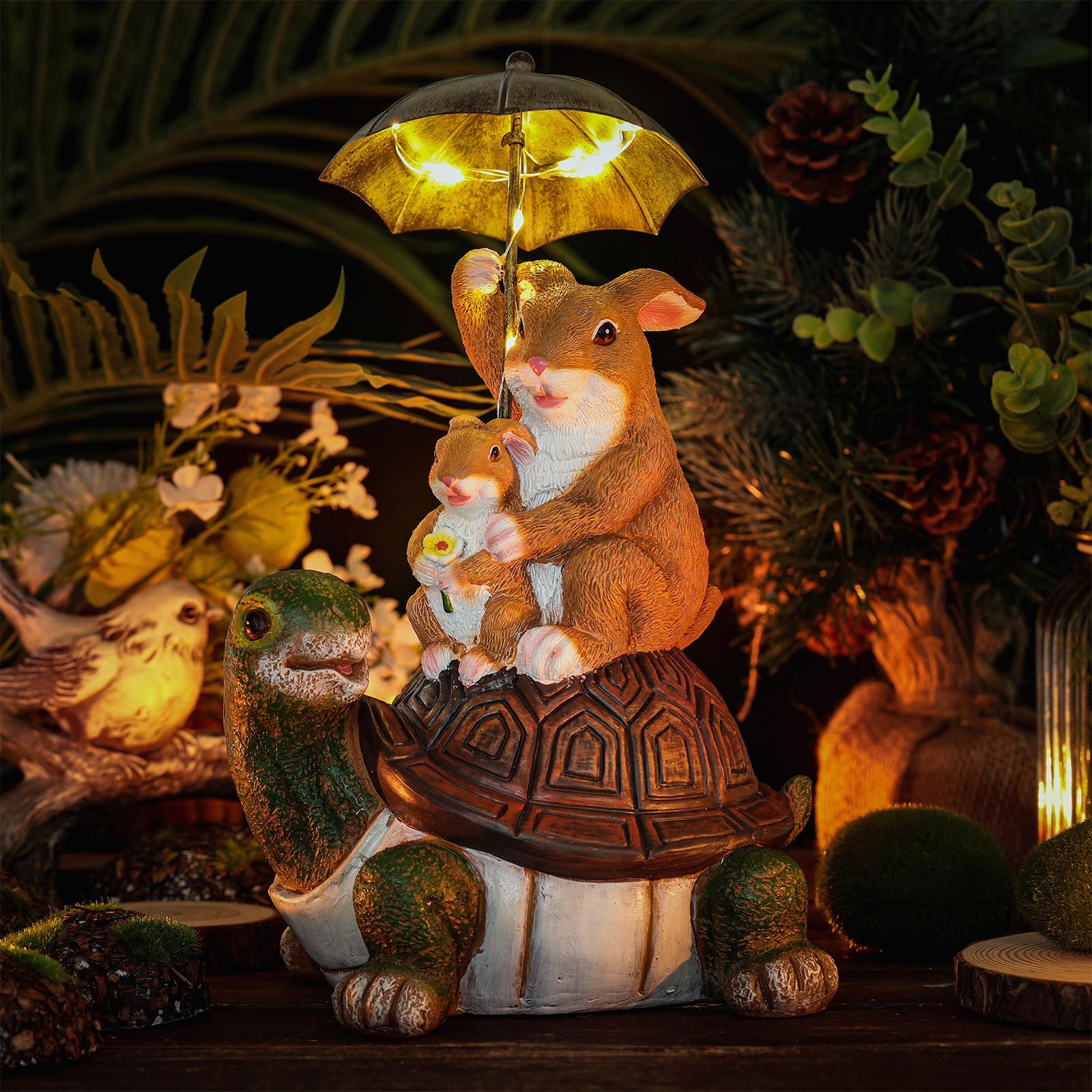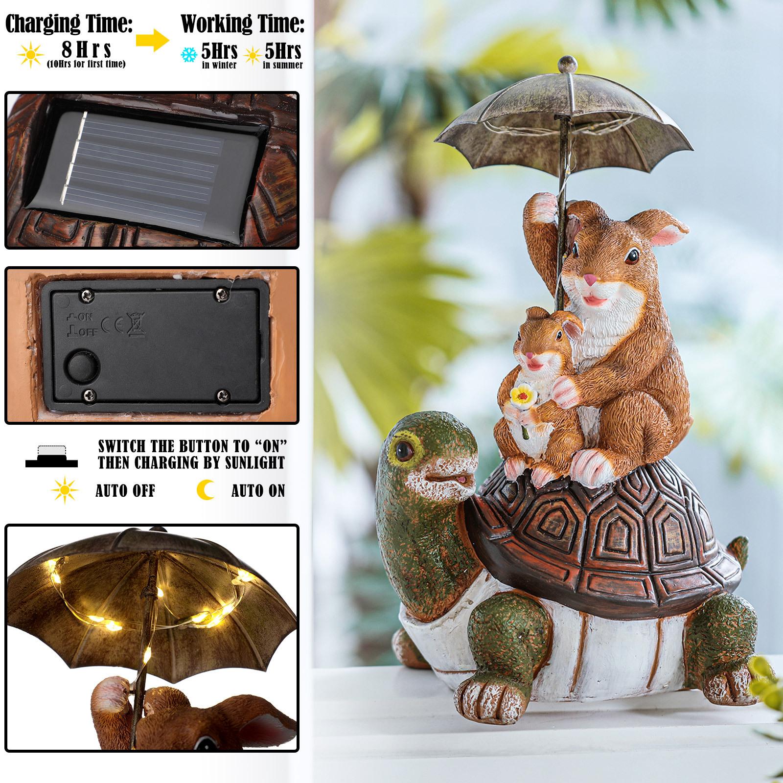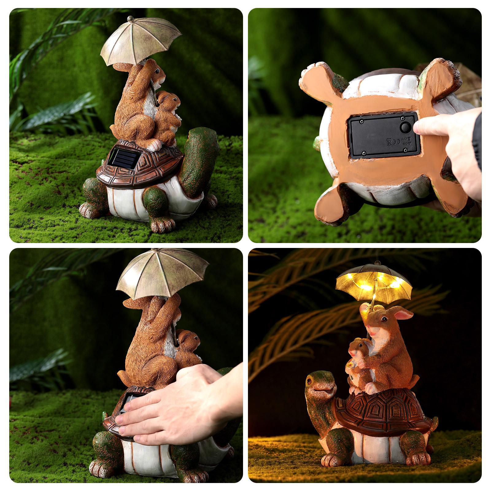 Paraguas de conejo sentado tortuga espalda decoración creativa artesanías de resina patio exterior decoraciones solares de animales