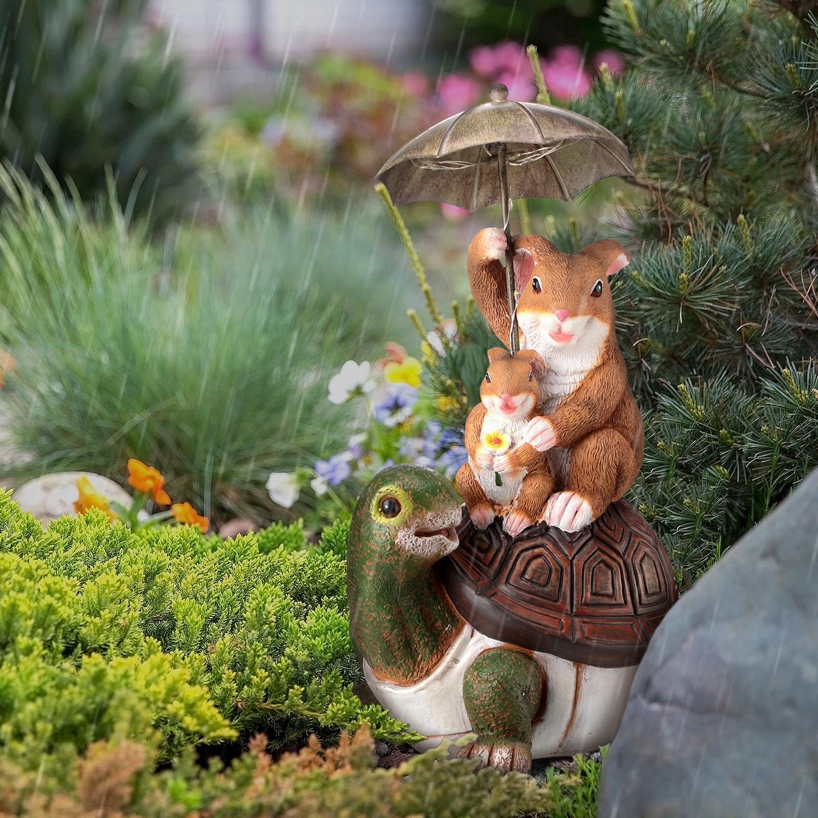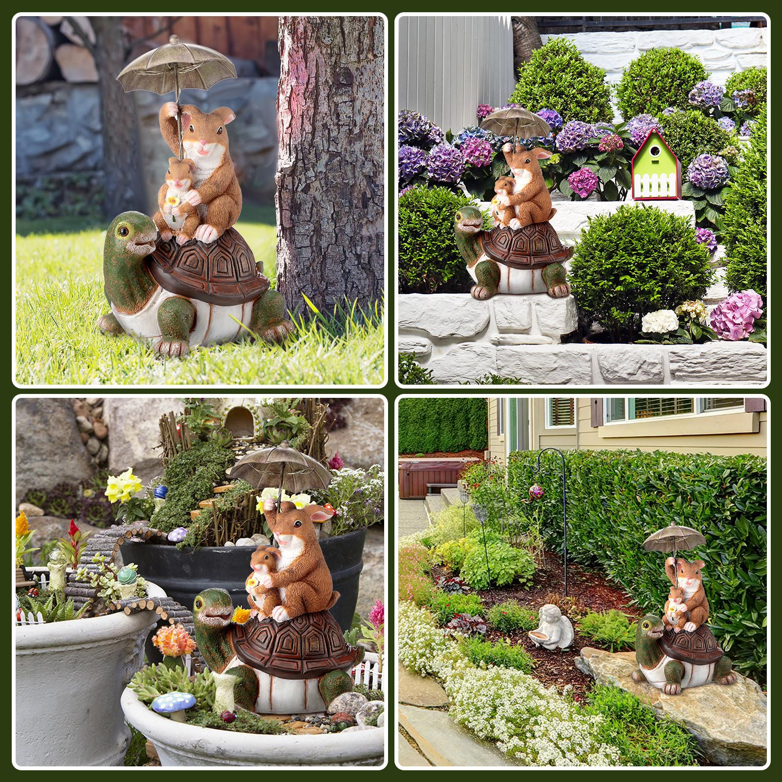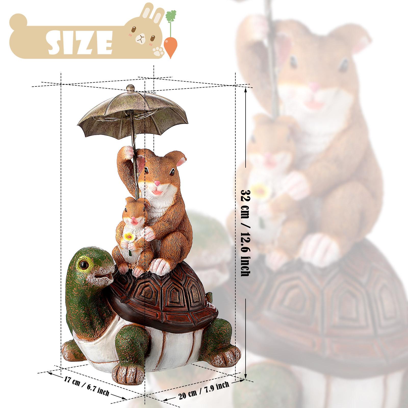 Paraguas de conejo sentado tortuga espalda decoración creativa artesanías de resina patio exterior decoraciones solares de animales
