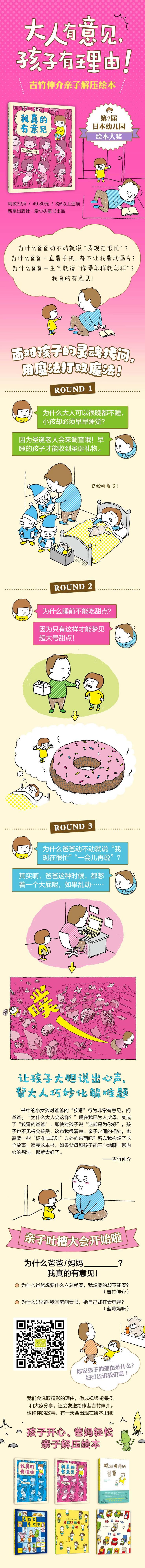 ¿Por qué no puedes comer donas antes de acostarte? Si te resistes a comer antes de acostarte, soñarás con donas gigantes por la noche. ¿Por qué papá siempre dice "Estoy ocupado ahora" o "Hablemos después"? De hecho, papá suele tener un gran pedo en mente cuando está así. La comunicación entre padres e hijos a veces requiere un sentido del humor. Ante la insatisfacción de los niños, ¡es mejor resolverlo humorísticamente de una manera que los niños puedan entender!