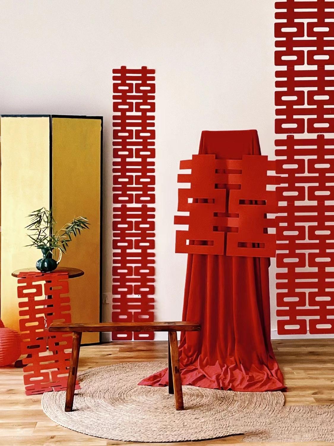Boda Casa Nueva decoración de habitación de boda juego completo hotel aderezo festivo Carácter Long Xi decoración de compromiso de escena pegatinas de carácter Xi