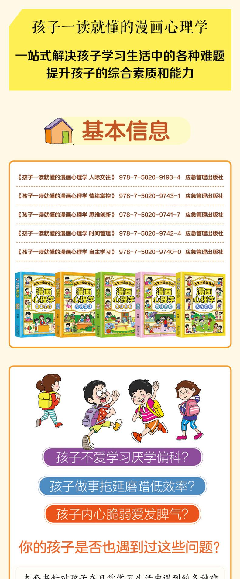 Conjunto completo de 5 libros de psicología infantil de dibujos animados para escuela primaria, libro ilustrado interesante sobre gestión de emociones y desarrollo del carácter, de 3 a 12 años.