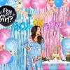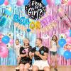 Decoración para fiesta de revelación de género de NIÑO O NIÑA, globo, traje, pancarta, papel de aluminio, mantel, cortina de seda y lluvia