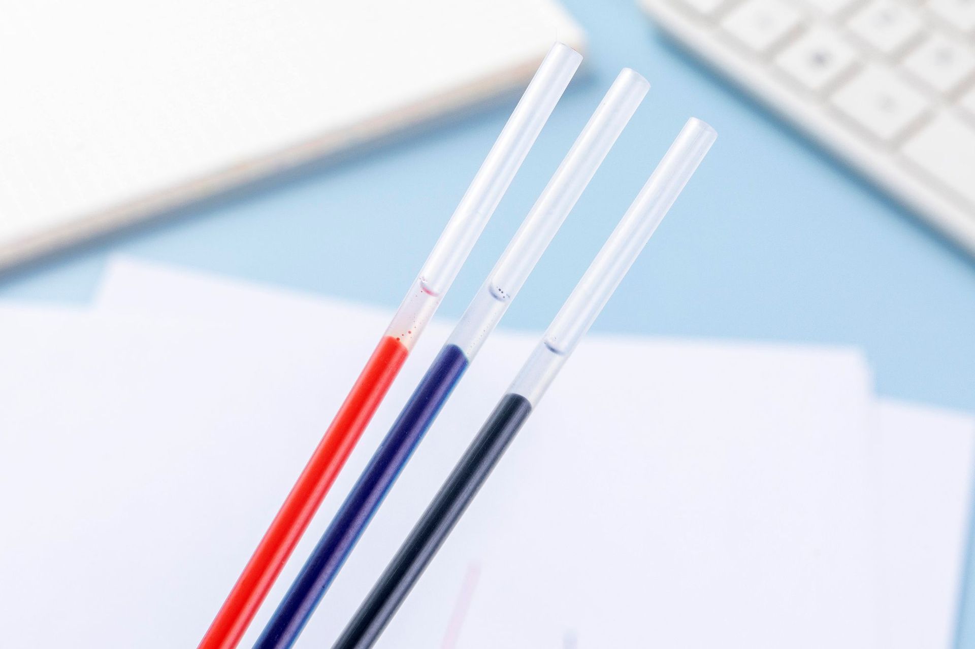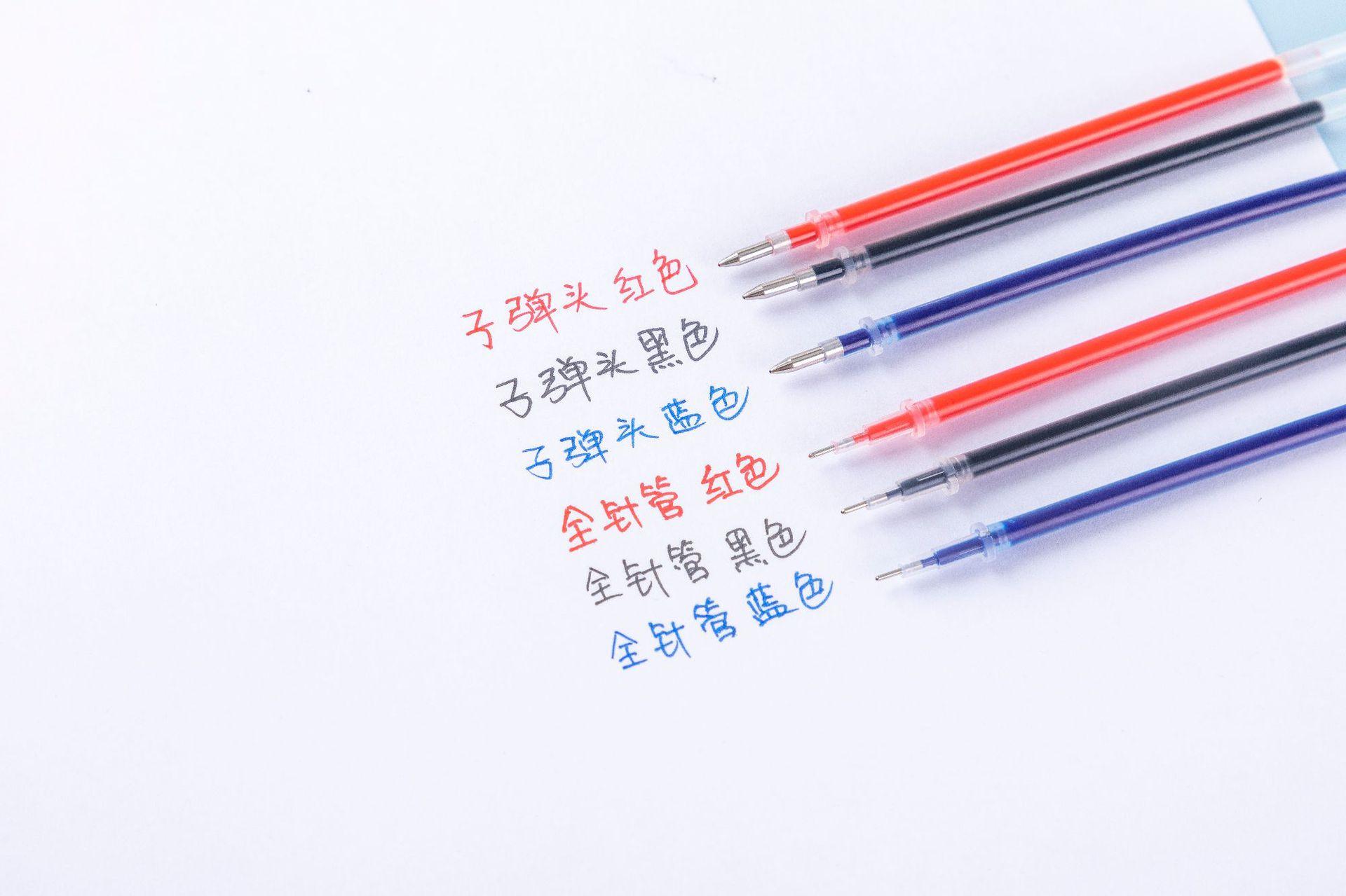 Recambio de aguja de carbono para oficina, recambio neutro al por mayor, tubo de aguja de 0,5 mm, color negro y azul