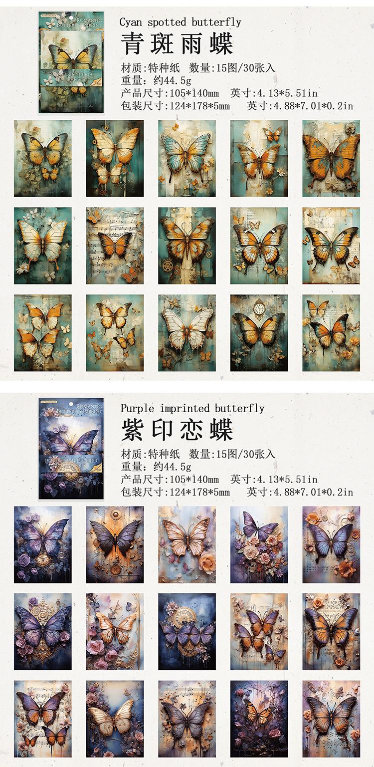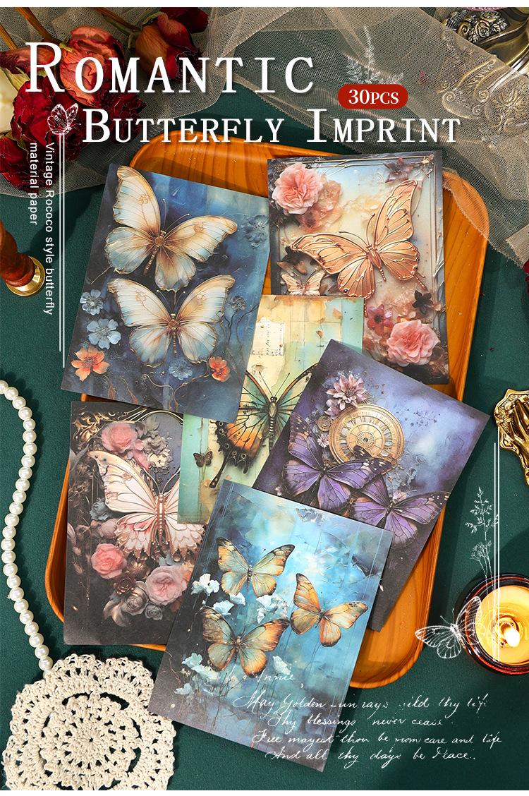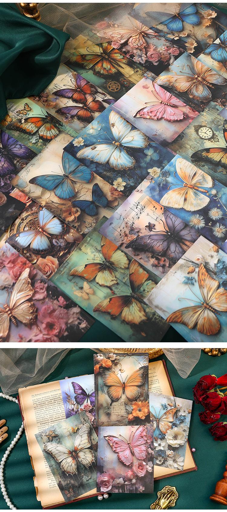 Serie de impresiones de mariposas románticas de bosque antiguo transfronterizo, mariposa de viento rococó retro, material de cuenta de mano, papel, cuenta de mano, collage