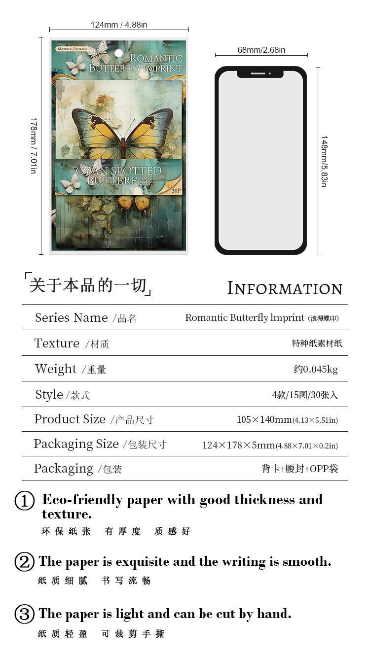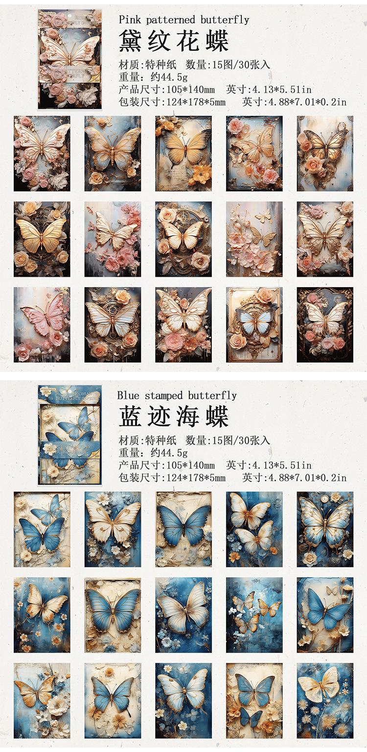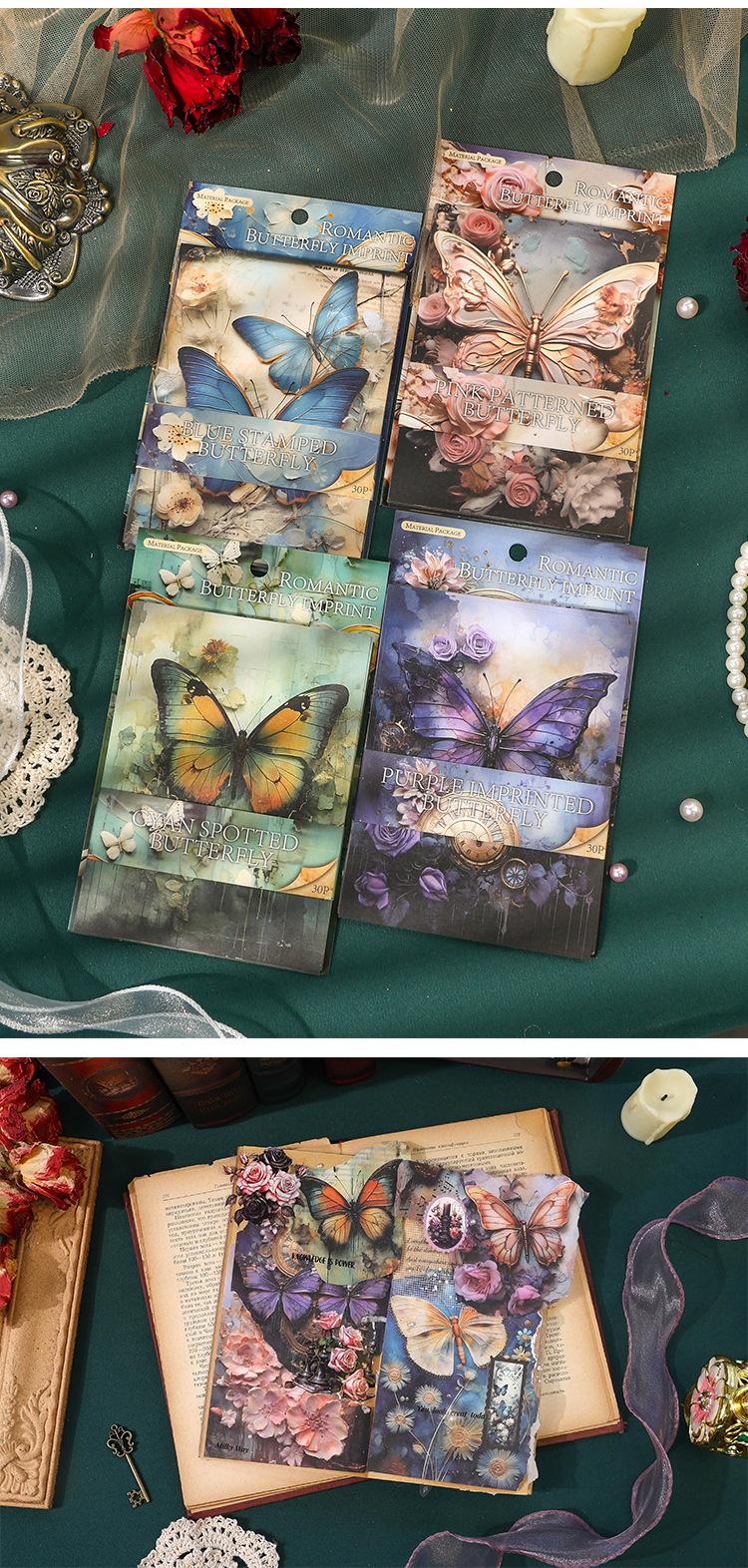 Serie de impresiones de mariposas románticas de bosque antiguo transfronterizo, mariposa de viento rococó retro, material de cuenta de mano, papel, cuenta de mano, collage