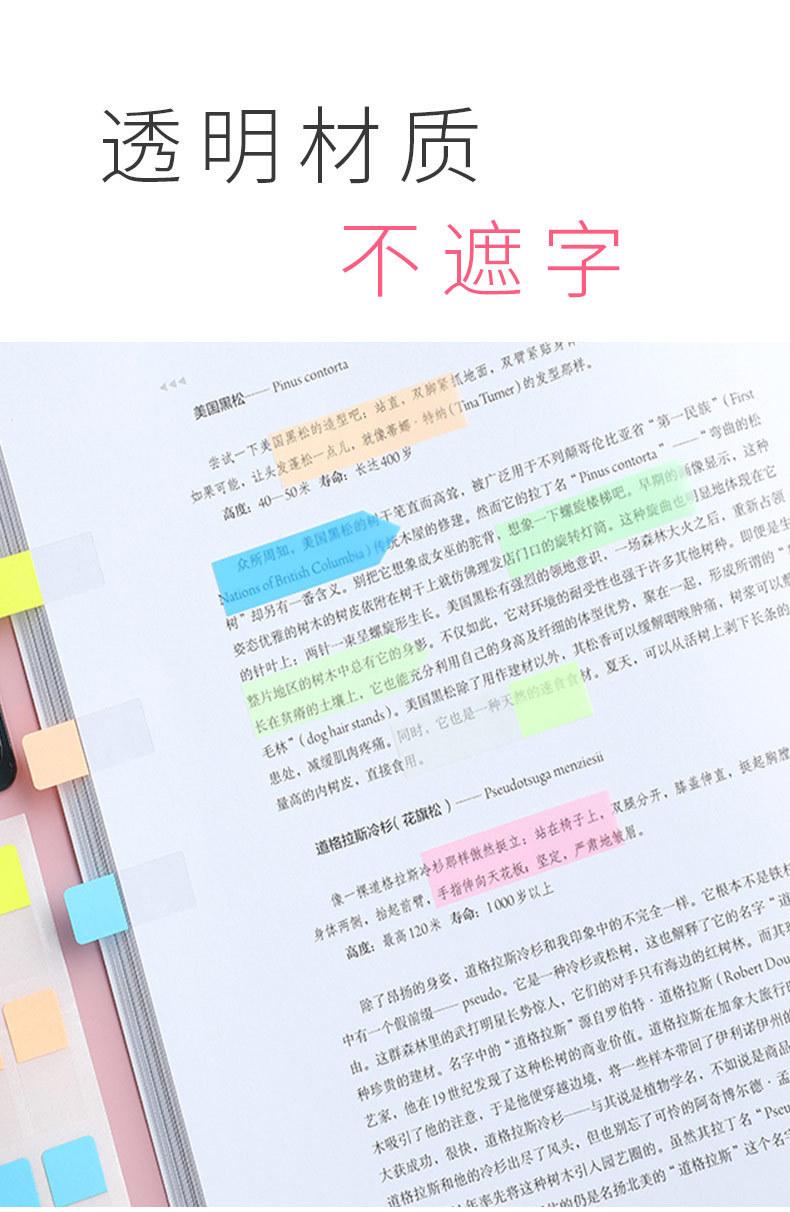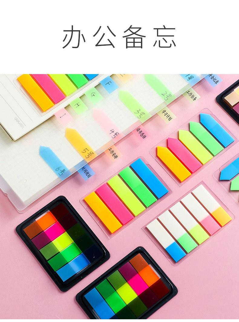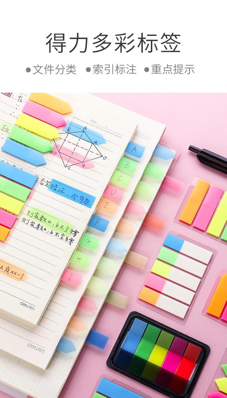 Etiqueta de nota adhesiva Deli, película fluorescente transparente, marca de índice, marcador de estudiante, pegatina, paginación, marca de clasificación