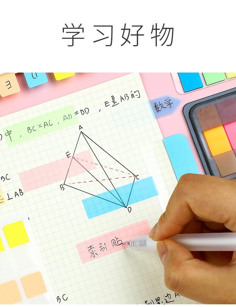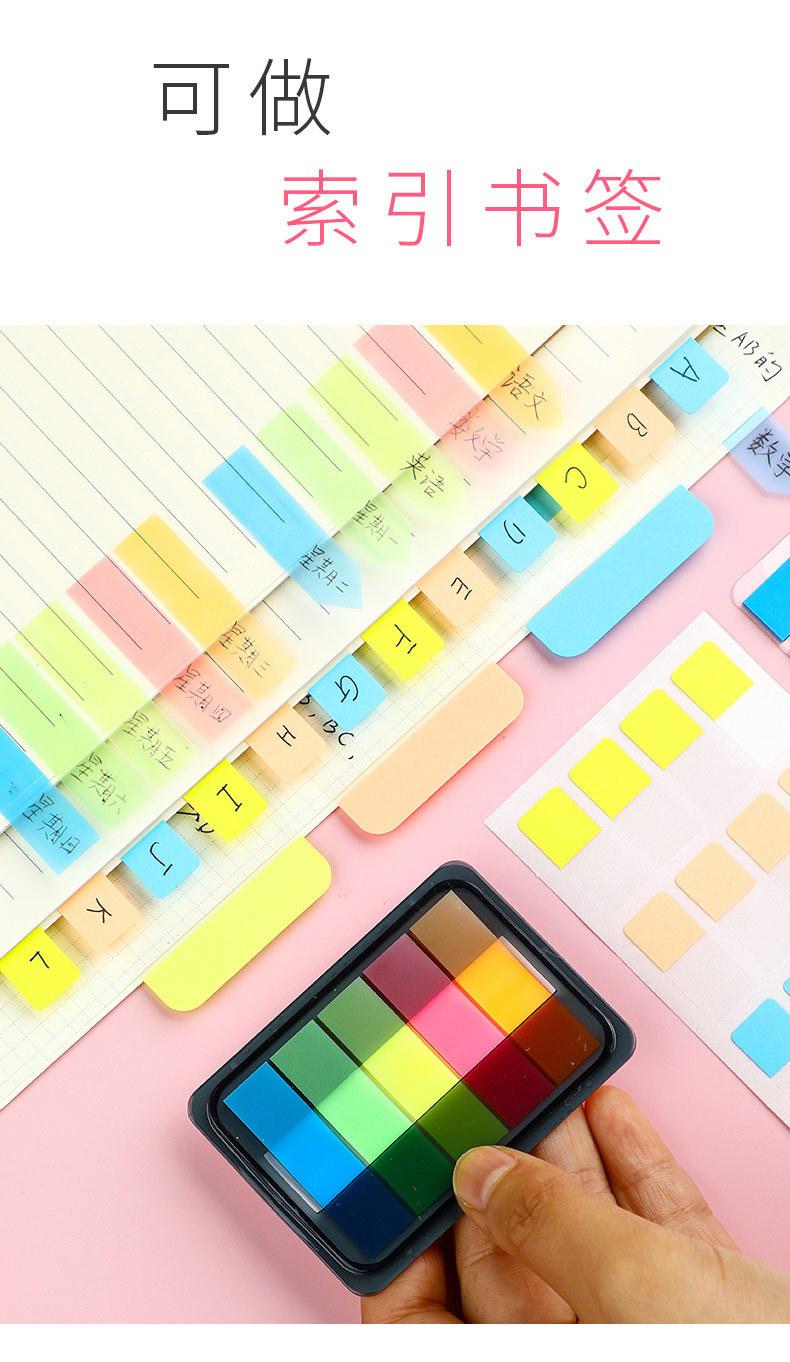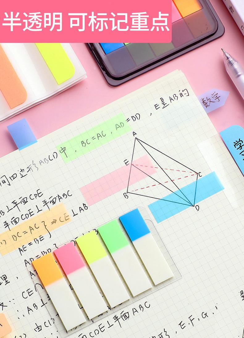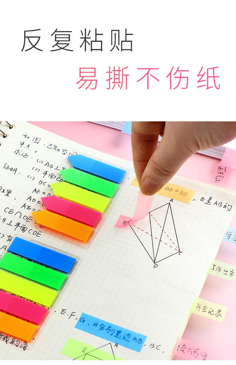 Etiqueta de nota adhesiva Deli, película fluorescente transparente, marca de índice, marcador de estudiante, pegatina, paginación, marca de clasificación