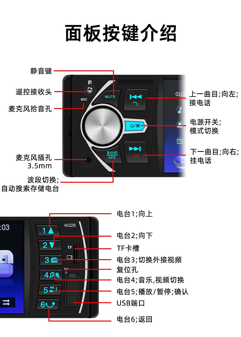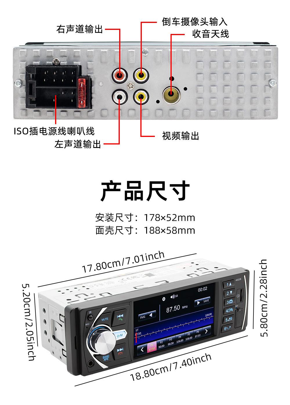 Reproductor MP5 para coche 4022B HD con Bluetooth inteligente, música sin pérdida, amplificador MP3 para coche, radio FM