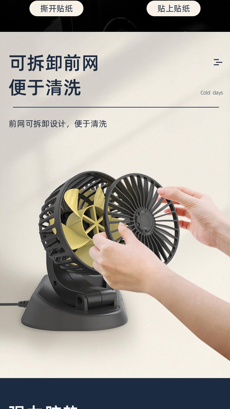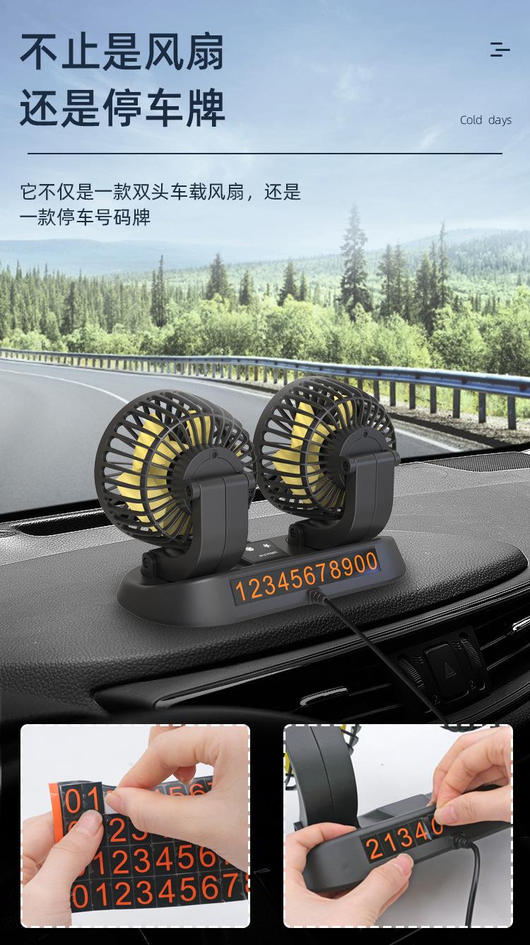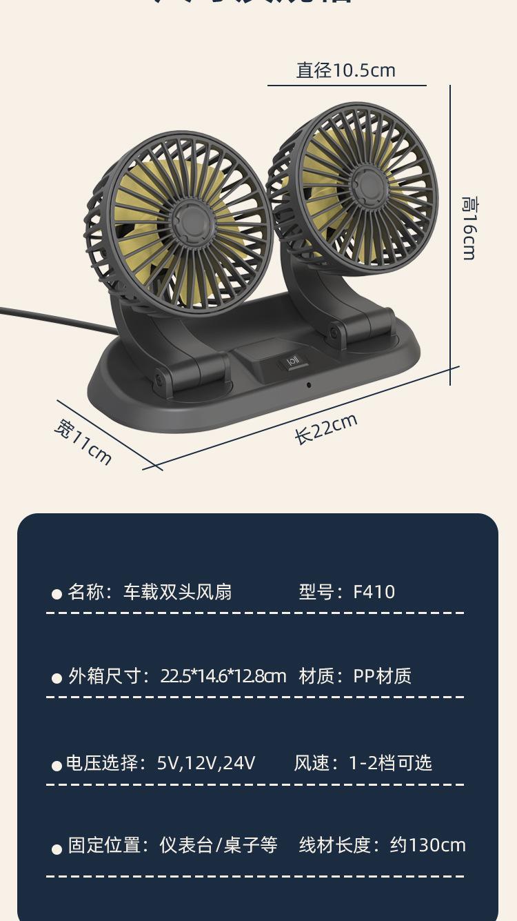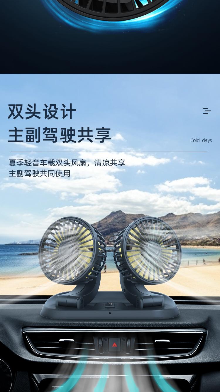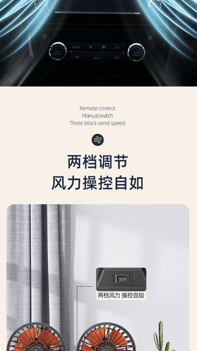 Ventilador eléctrico para coche, doble cabezal, 12 V/24 V, gran viento, doble control, para camión, furgoneta, USB