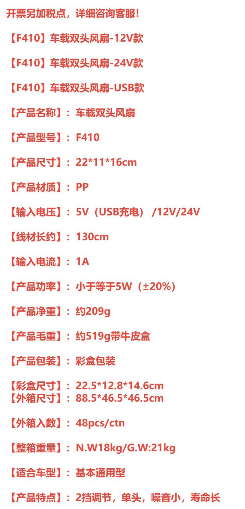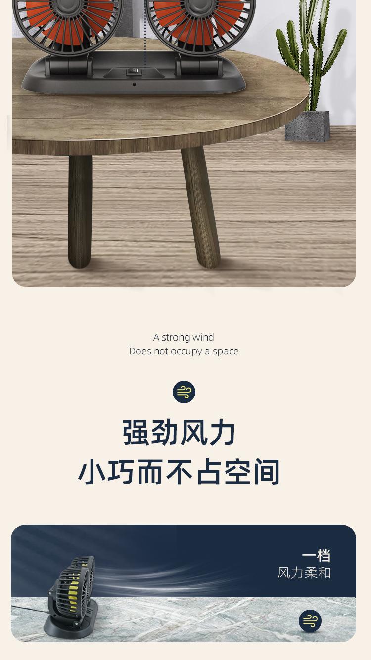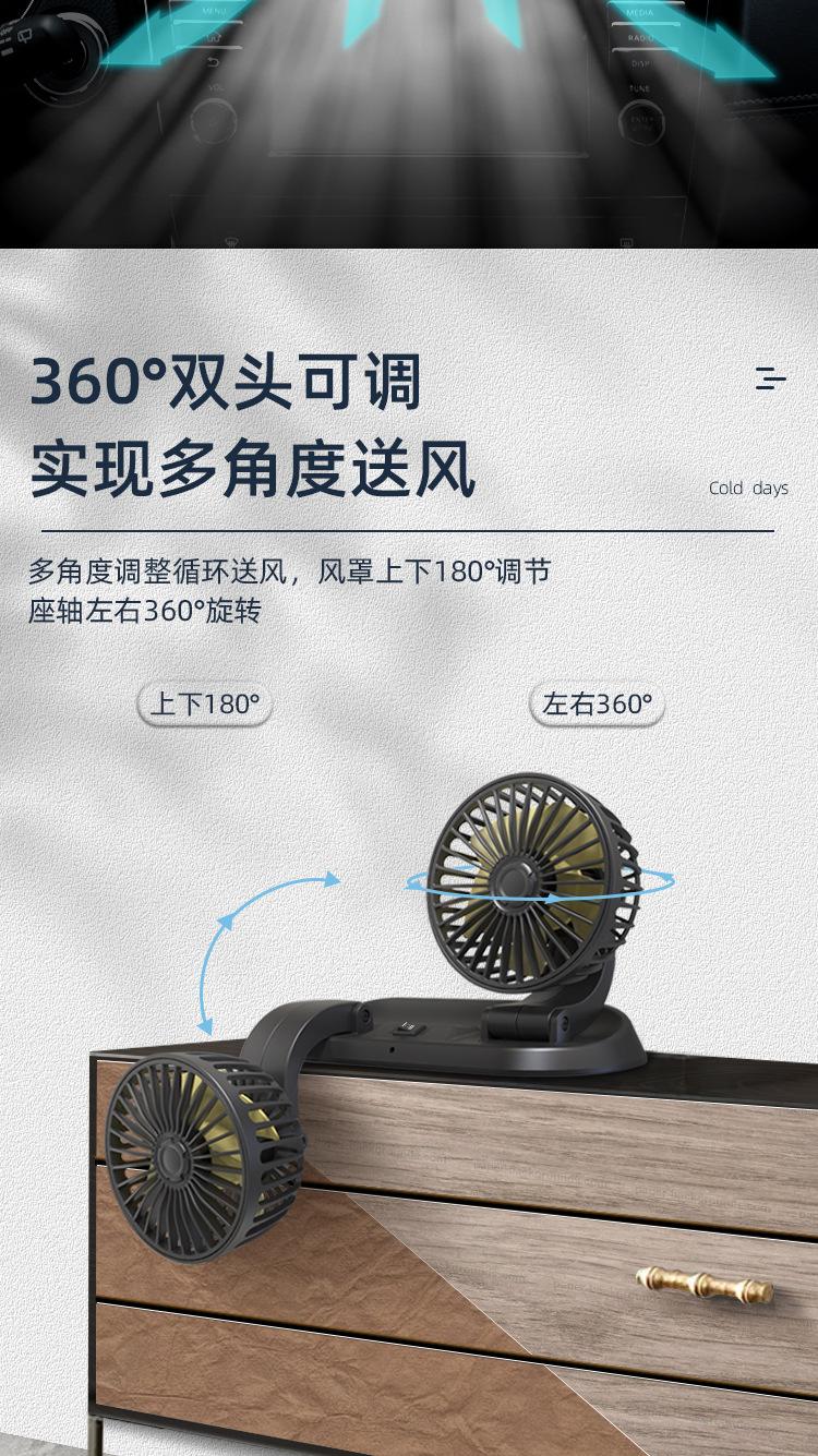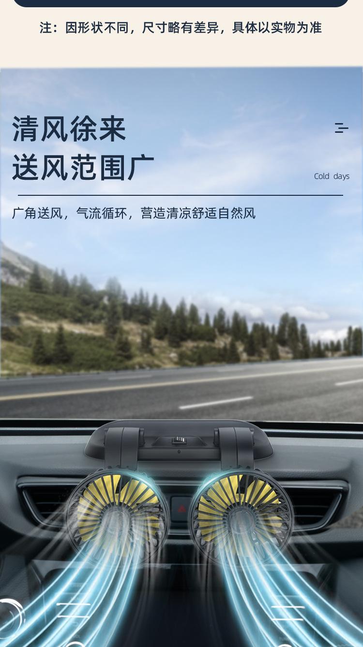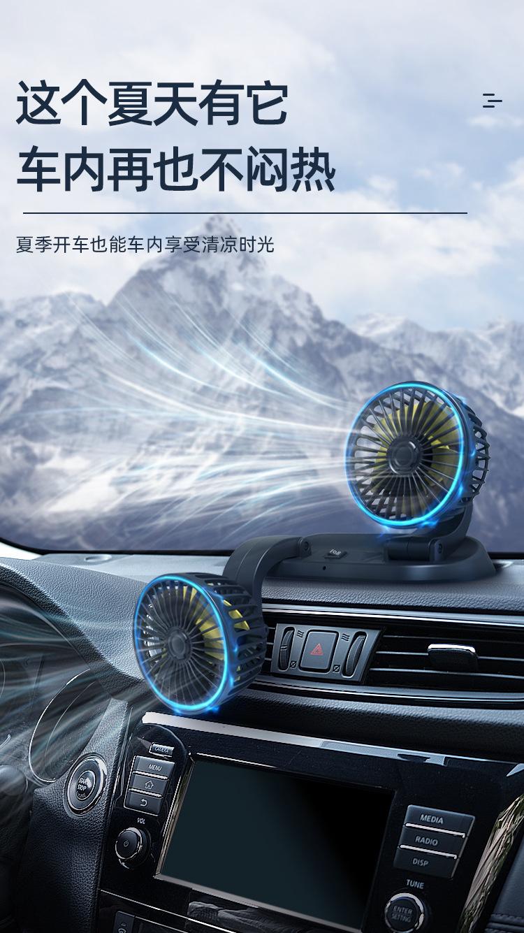 Ventilador eléctrico para coche, doble cabezal, 12 V/24 V, gran viento, doble control, para camión, furgoneta, USB