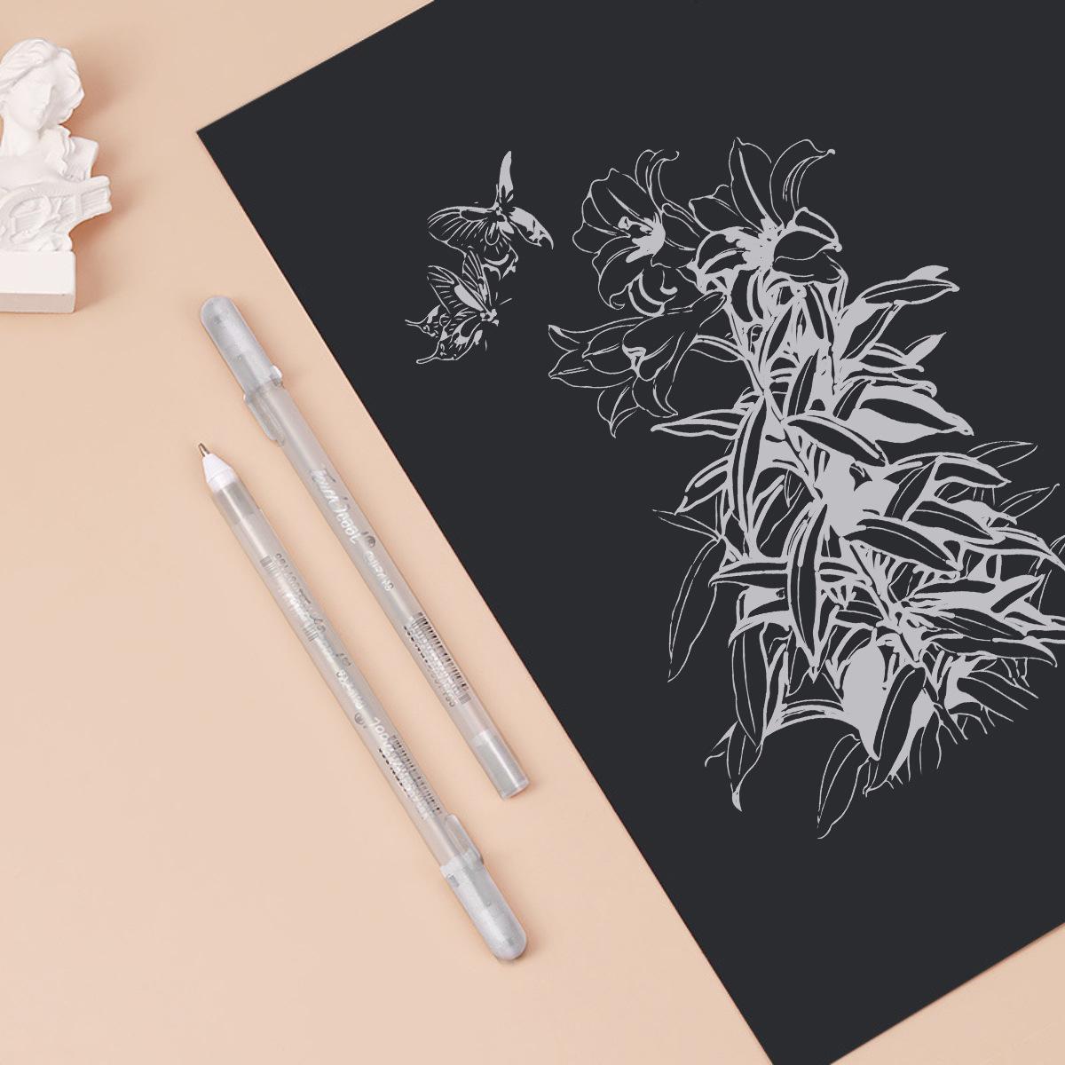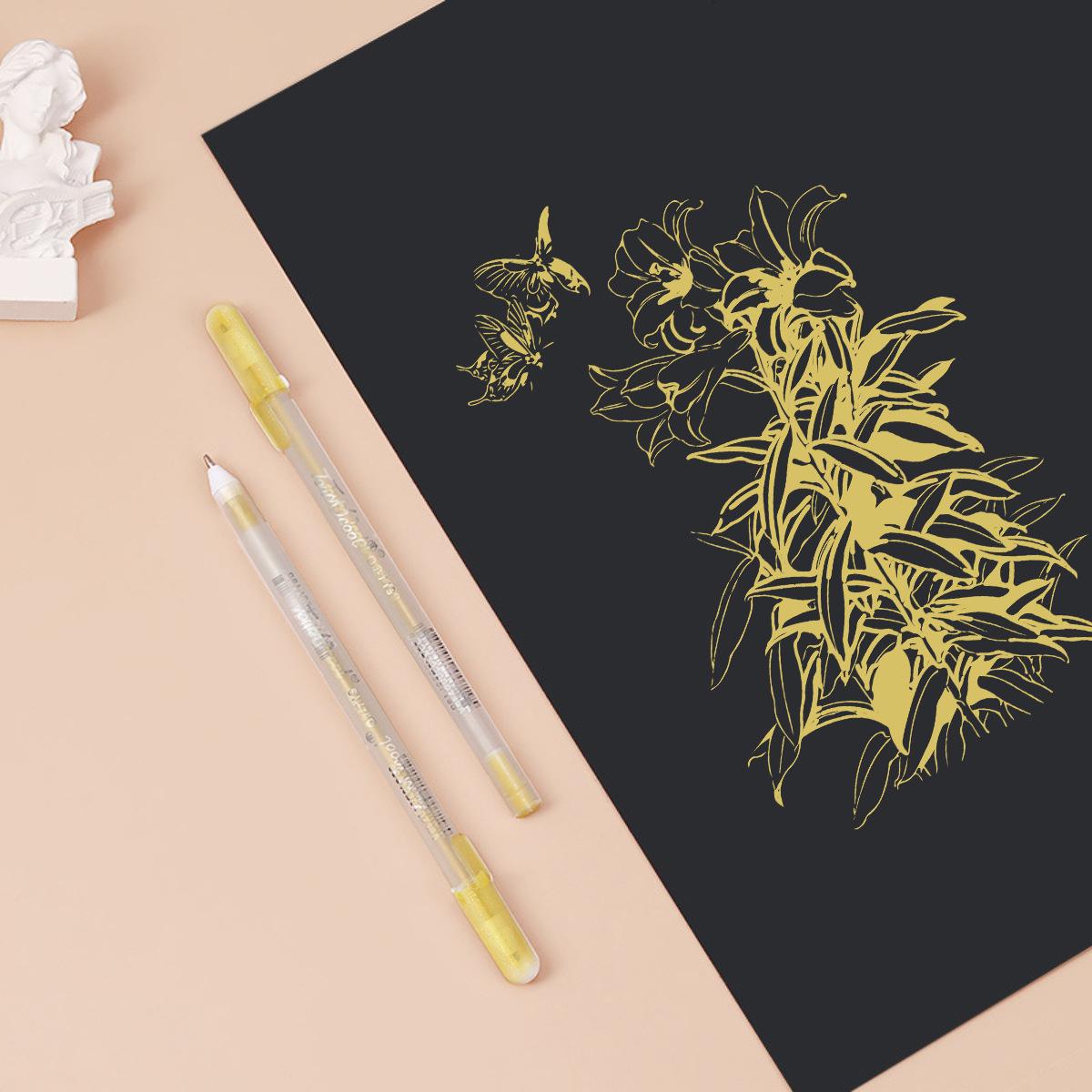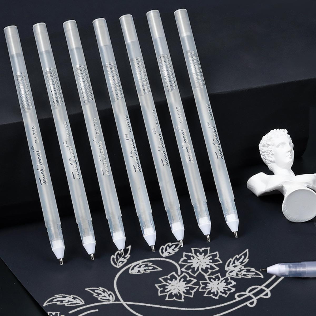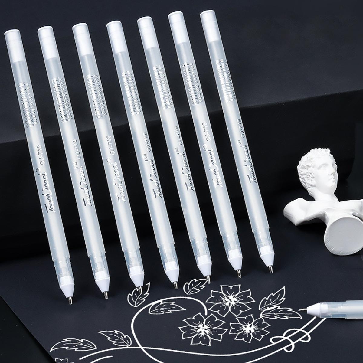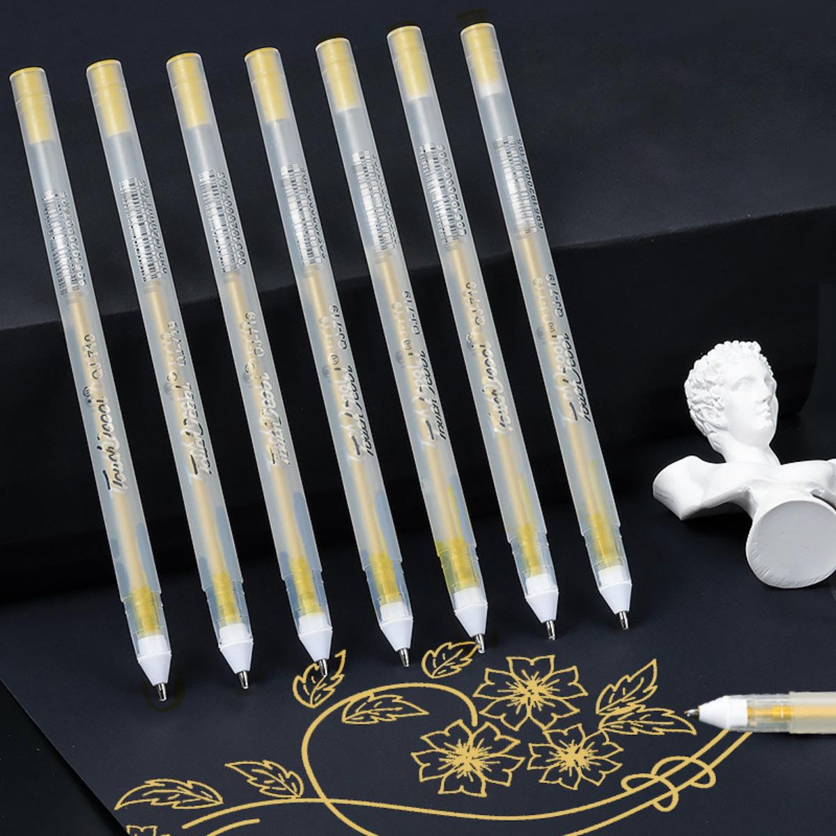 Bolígrafo AMBen de alto brillo, dorado, plateado y blanco, pintado a mano, con punta de bala, para acuarela, pincel, rotulador