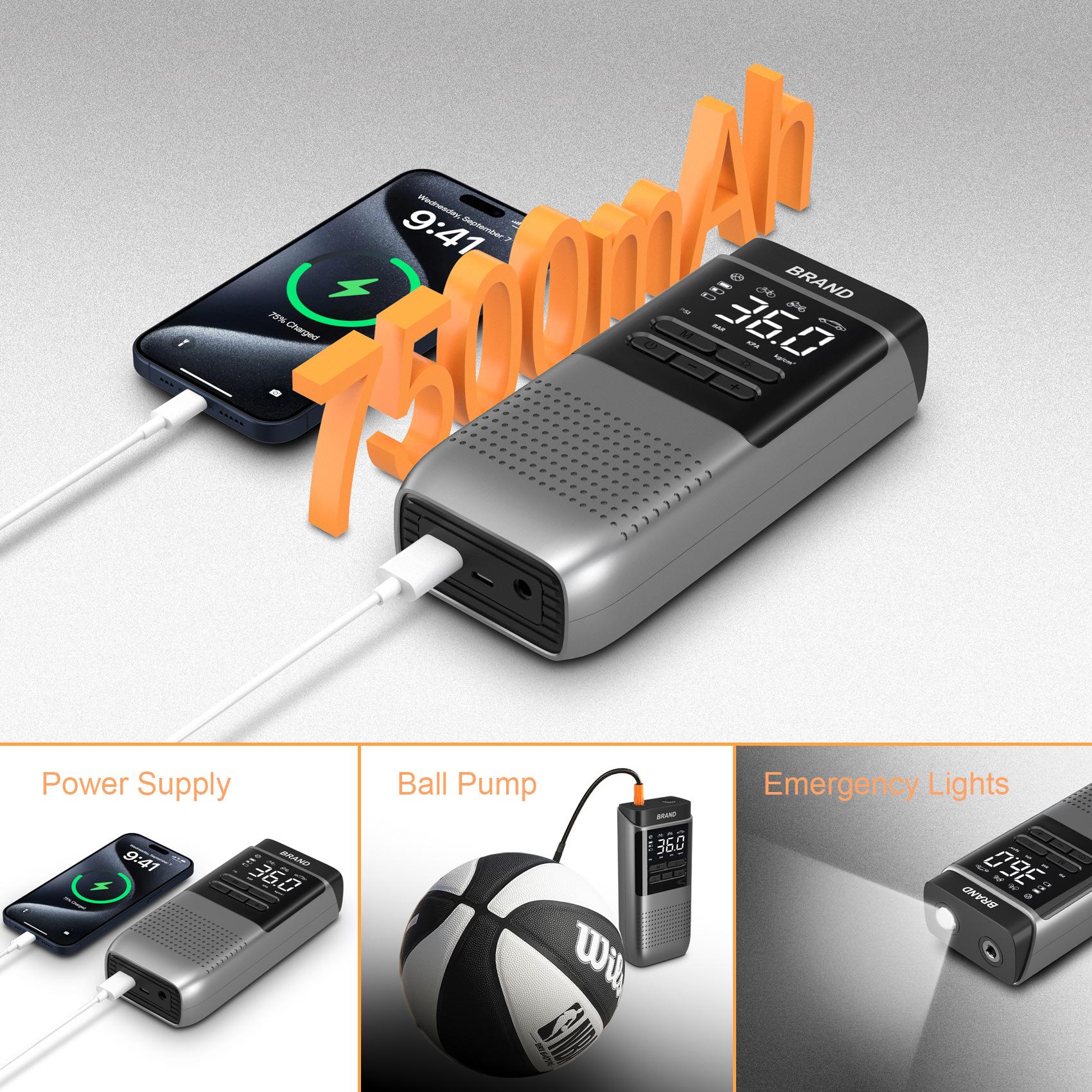 Bomba de aire portátil para vehículo Eléctrica 25 cilindros Batería 4000mAh Fuente de alimentación móvil Iluminación de emergencia