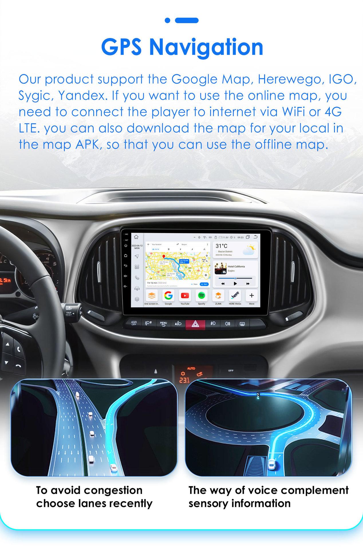 Navegador GPS todo en uno transfronterizo de 9 pulgadas para Fiat Doblo Android de 2015 a 2019 con pantalla grande inteligente