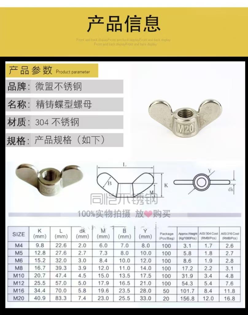 Tuerca Mariposa de Acero Inoxidable 304 al por Mayor de Entrega Inmediata Tuerca de Ala Tuerca Lingote Tuerca Mariposa Tapa de Tornillo de Mano de Ala Redonda