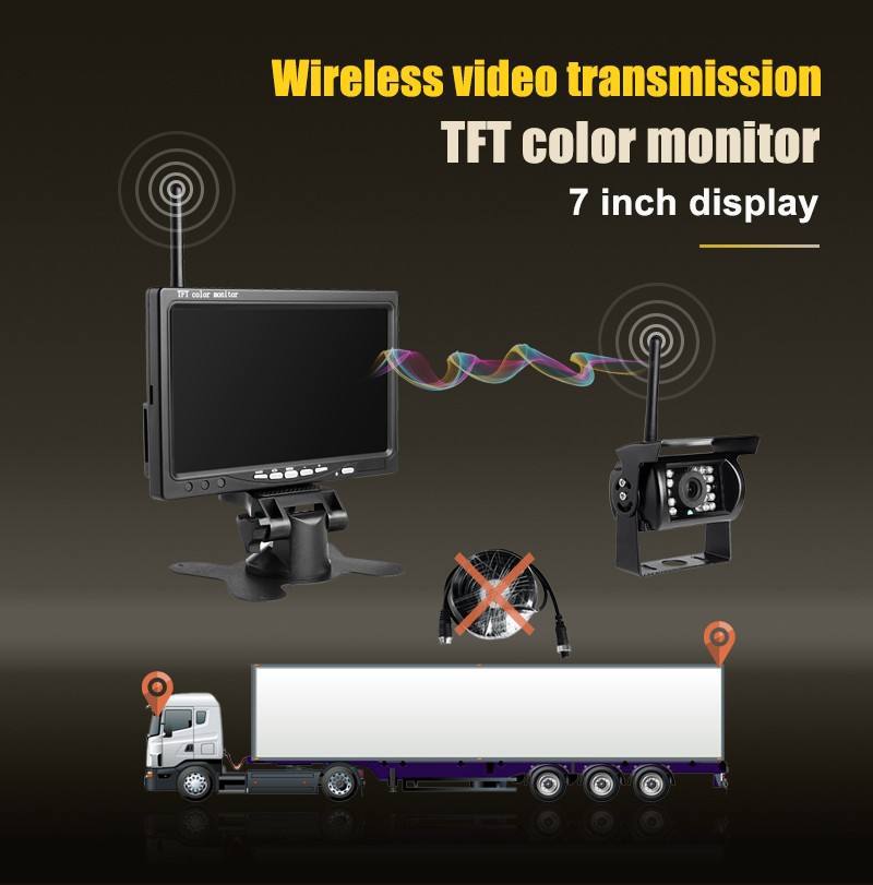 Monitor inalámbrico para coche de 7 pulgadas con imagen de marcha atrás HD para camión.
