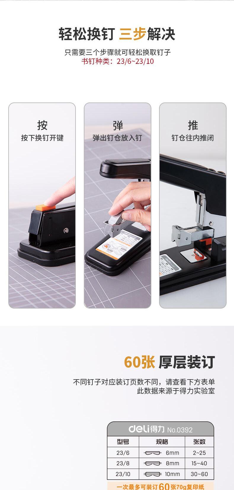 Grapadora de oficina Deli 0392 de alta resistencia que ahorra mano de obra, grapadora grande y engrosada, puede solicitar 60 páginas de suministros de oficina