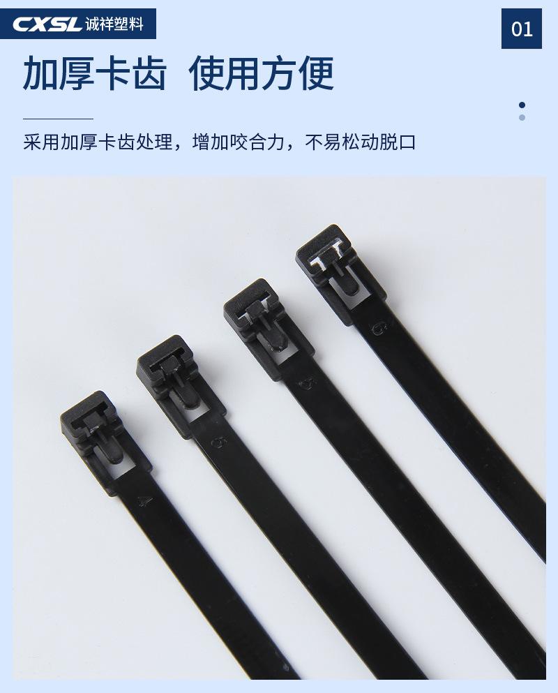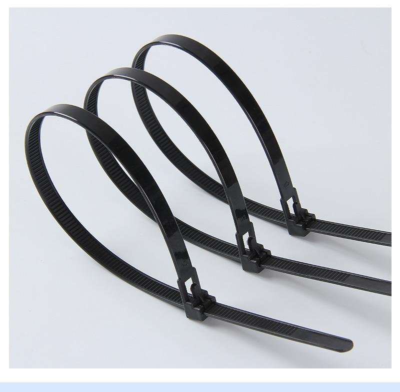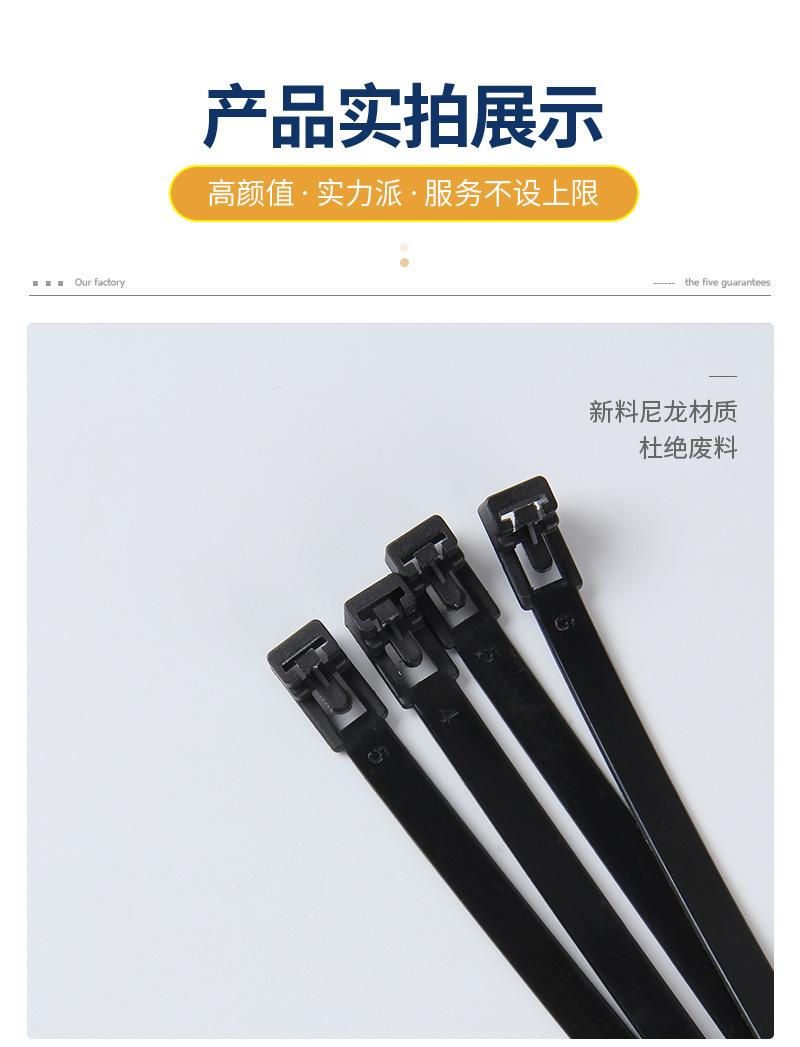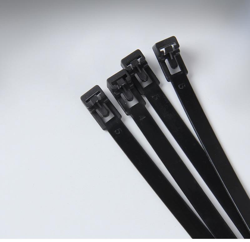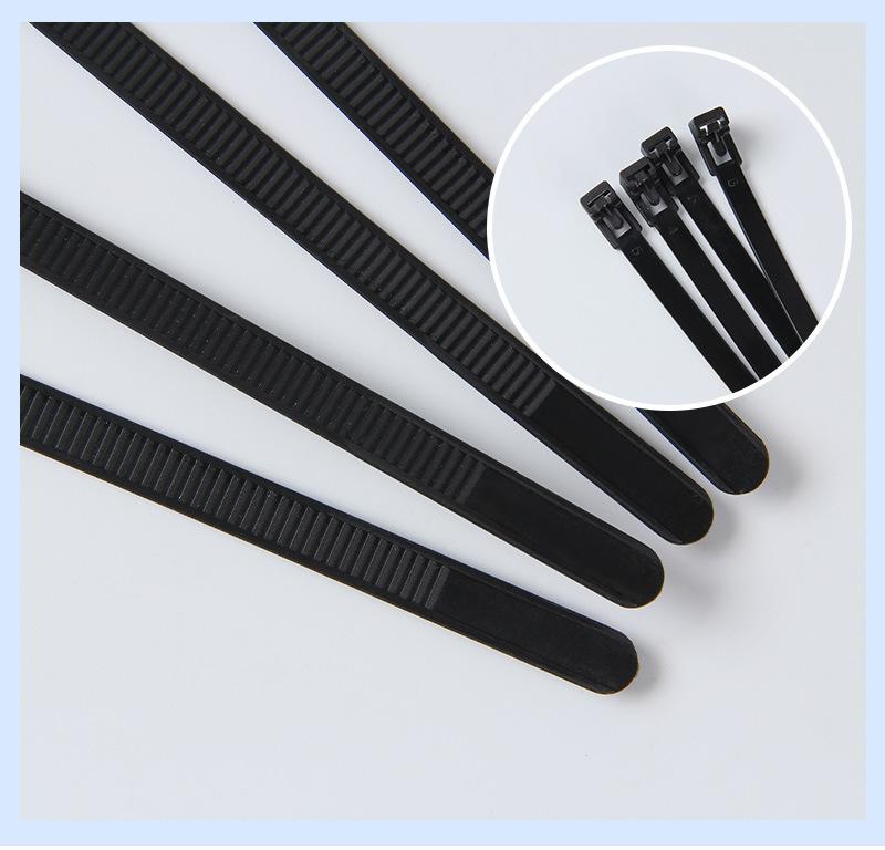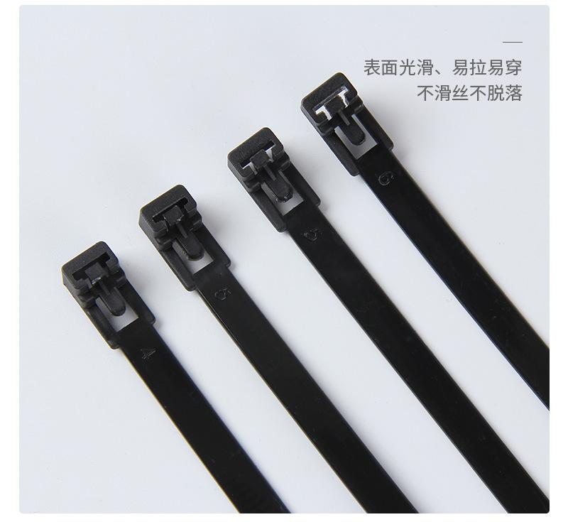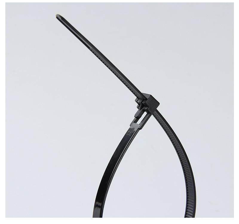 Brida de nailon negra resistente al frío, resistente a la corrosión, con cuerda fija, correa de alambre, hebilla de plástico, brida autoblocante