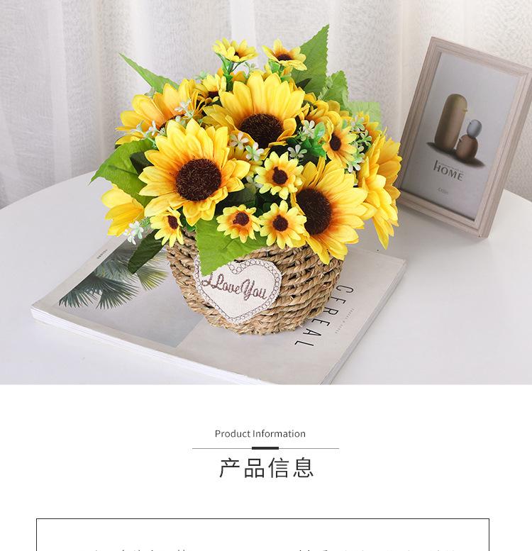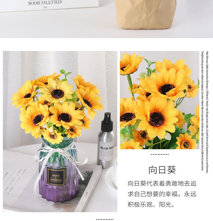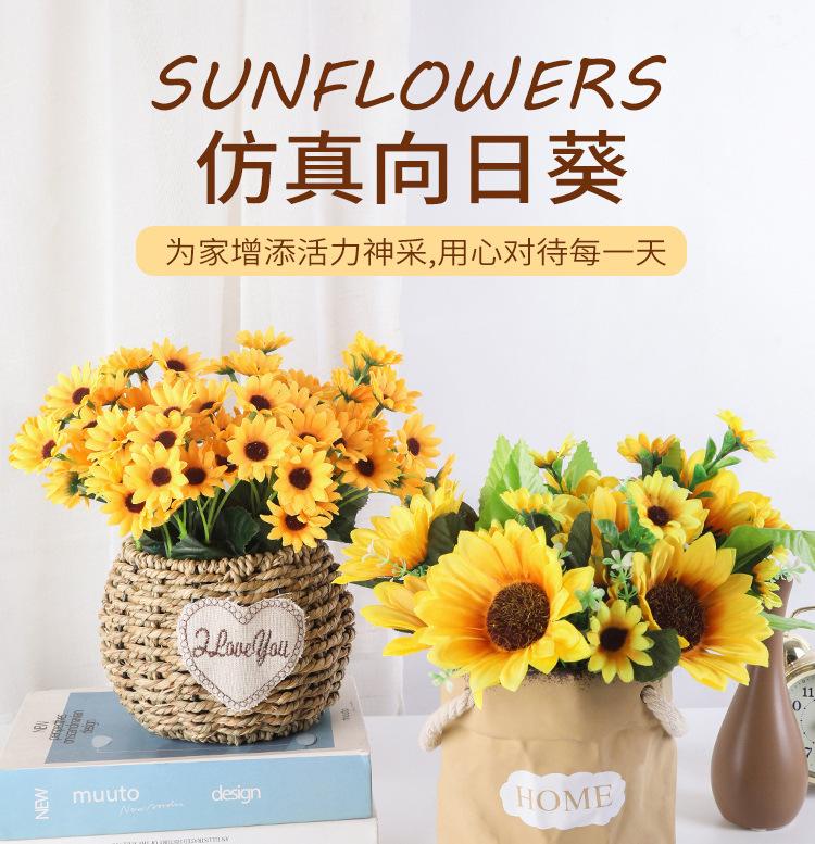 Girasol de simulación girasol boda sesión de fotos flor pequeña flor falsa ramo de plástico adornos de sala de estar decoración del hogar