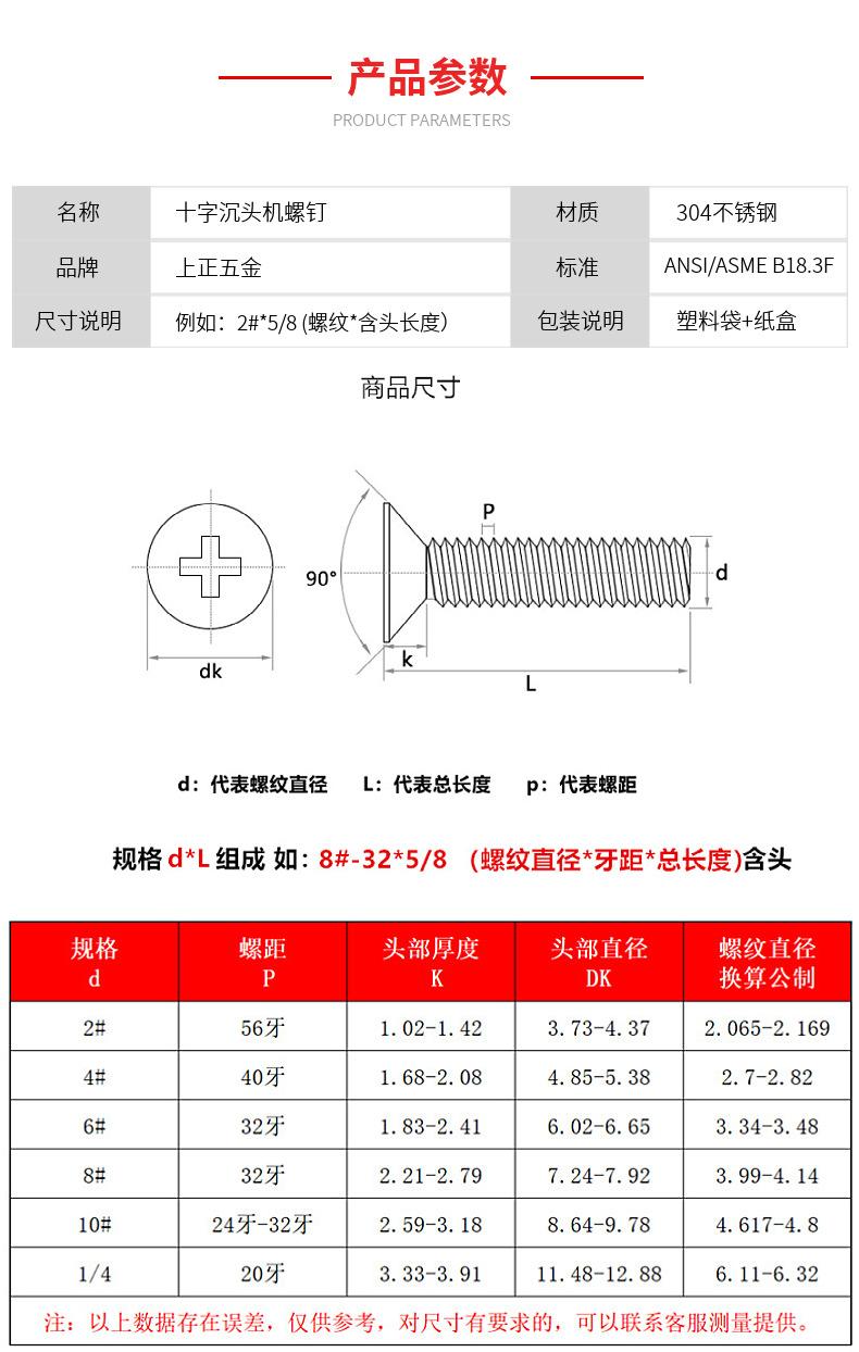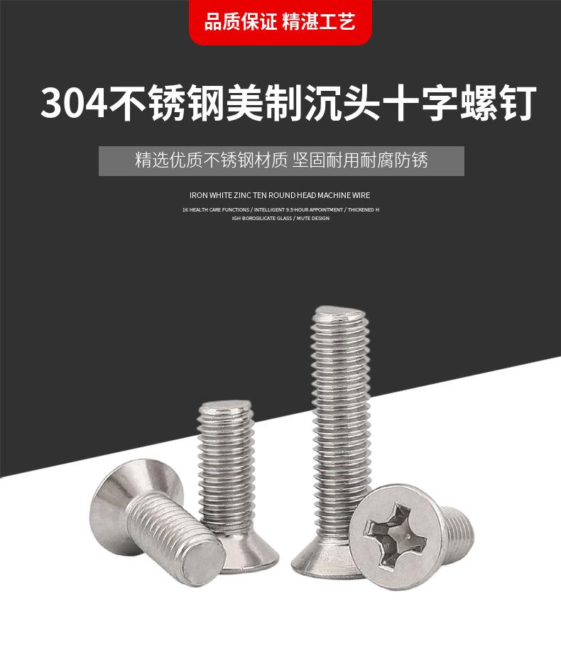 Tornillo de cabeza plana en cruz de acero inoxidable 304 de n.° 2-1/4-20UNC, con dientes para máquina, cabeza avellanada y ranura en cruz, para EE. UU.