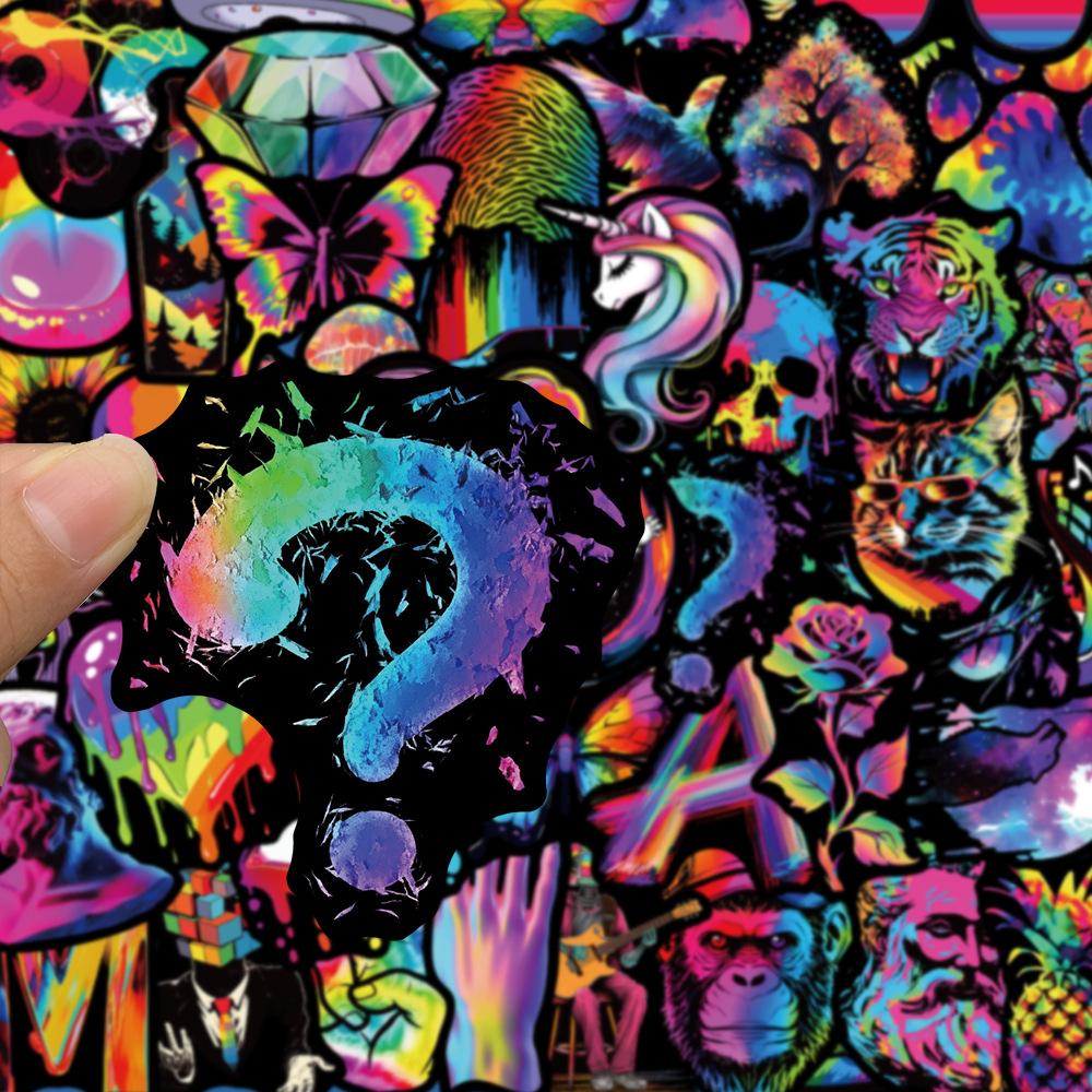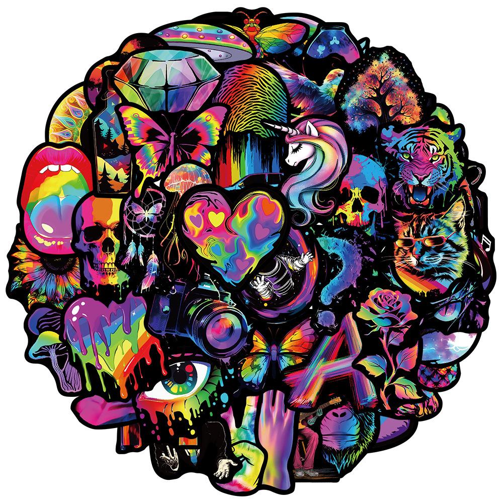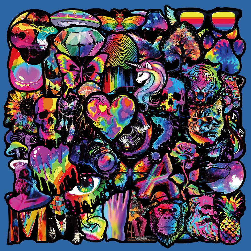 50 pegatinas de graffiti de arcoíris de dibujos animados transfronterizas material decorativo funda para teléfono móvil Diario guitarra pegatinas impermeables al por mayor