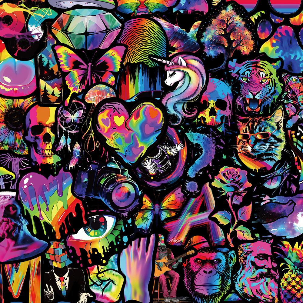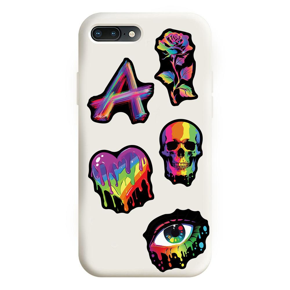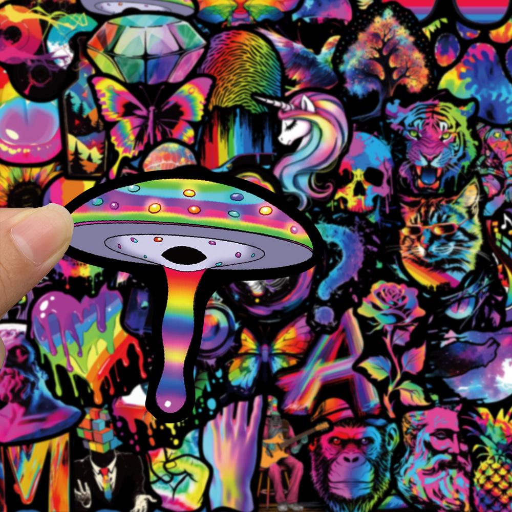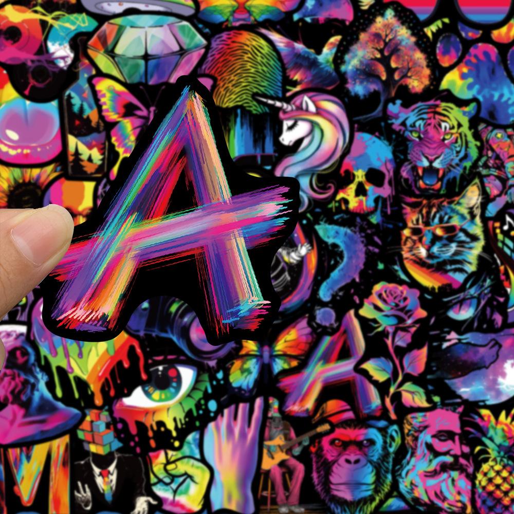 50 pegatinas de graffiti de arcoíris de dibujos animados transfronterizas material decorativo funda para teléfono móvil Diario guitarra pegatinas impermeables al por mayor
