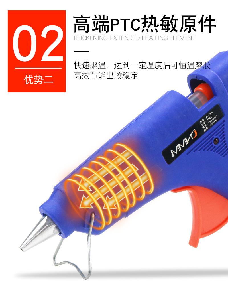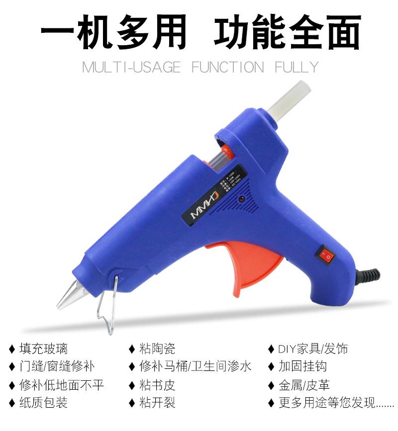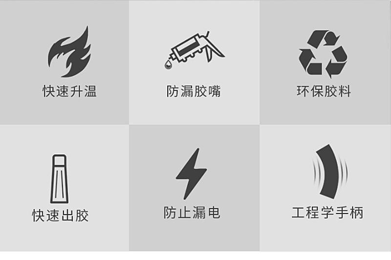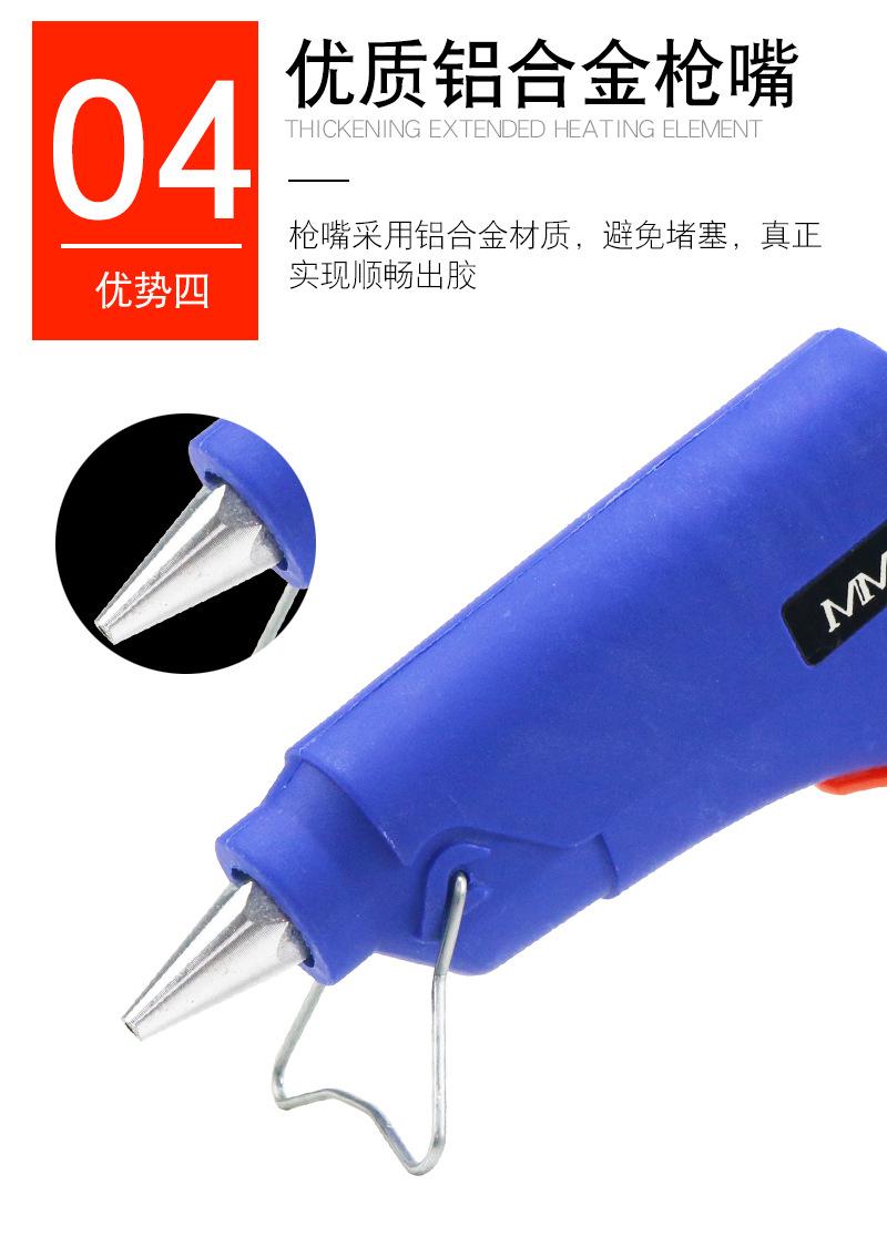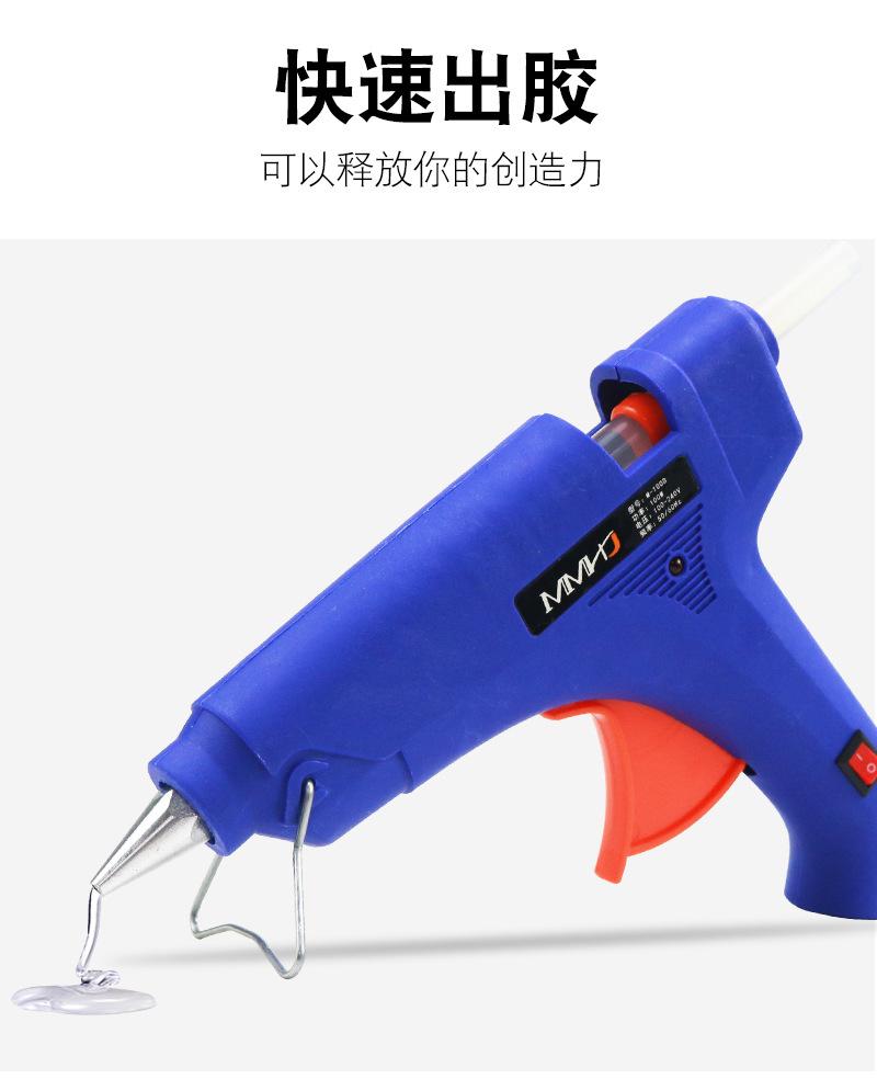 Nota: La pistola de pegamento necesita calentarse durante más de 8-10 minutos. Solo cuando se alcanza la temperatura se puede accionar el pegamento. Jalar el gatillo antes de que se alcance la temperatura puede causar reflujo. (No se admiten devoluciones por uso indebido)