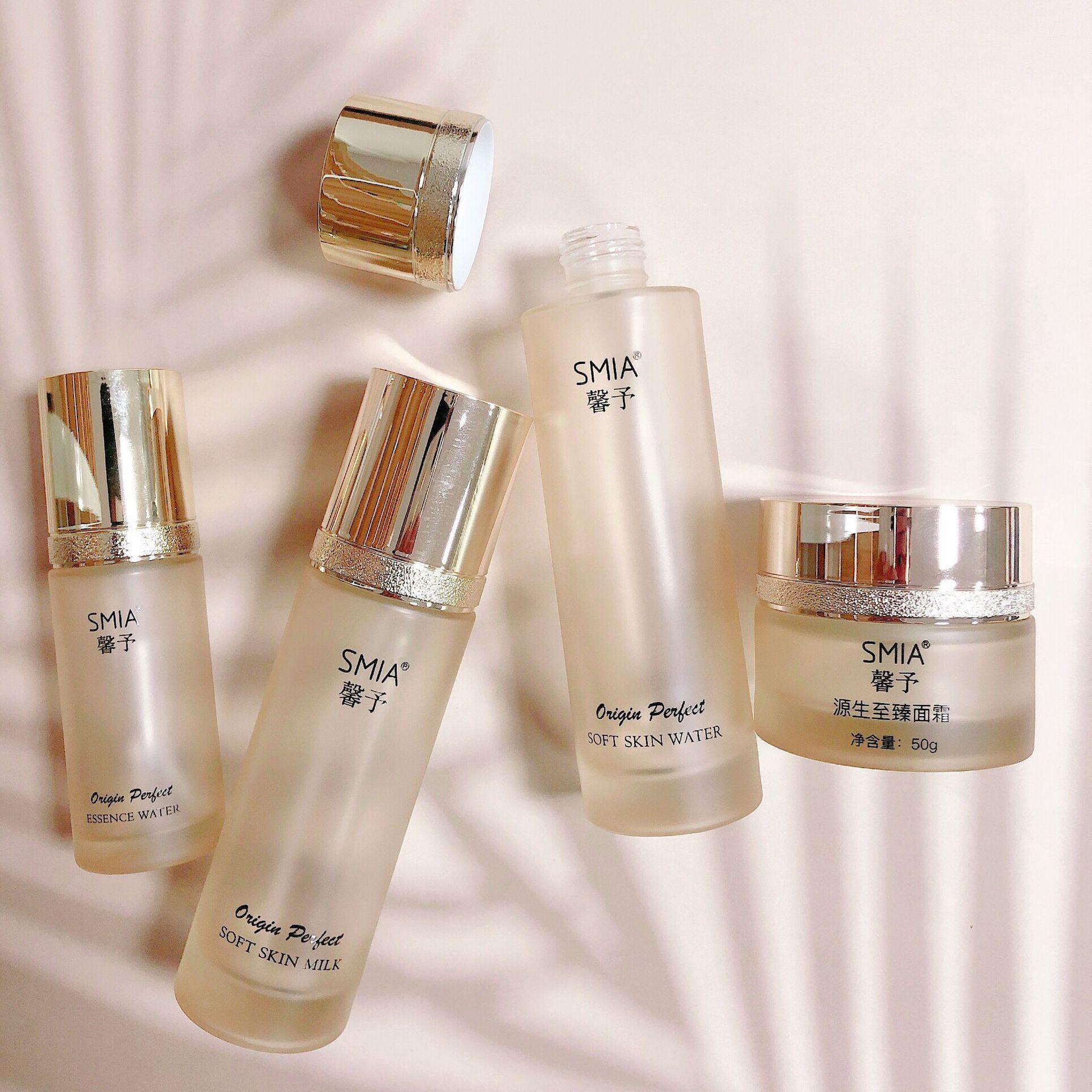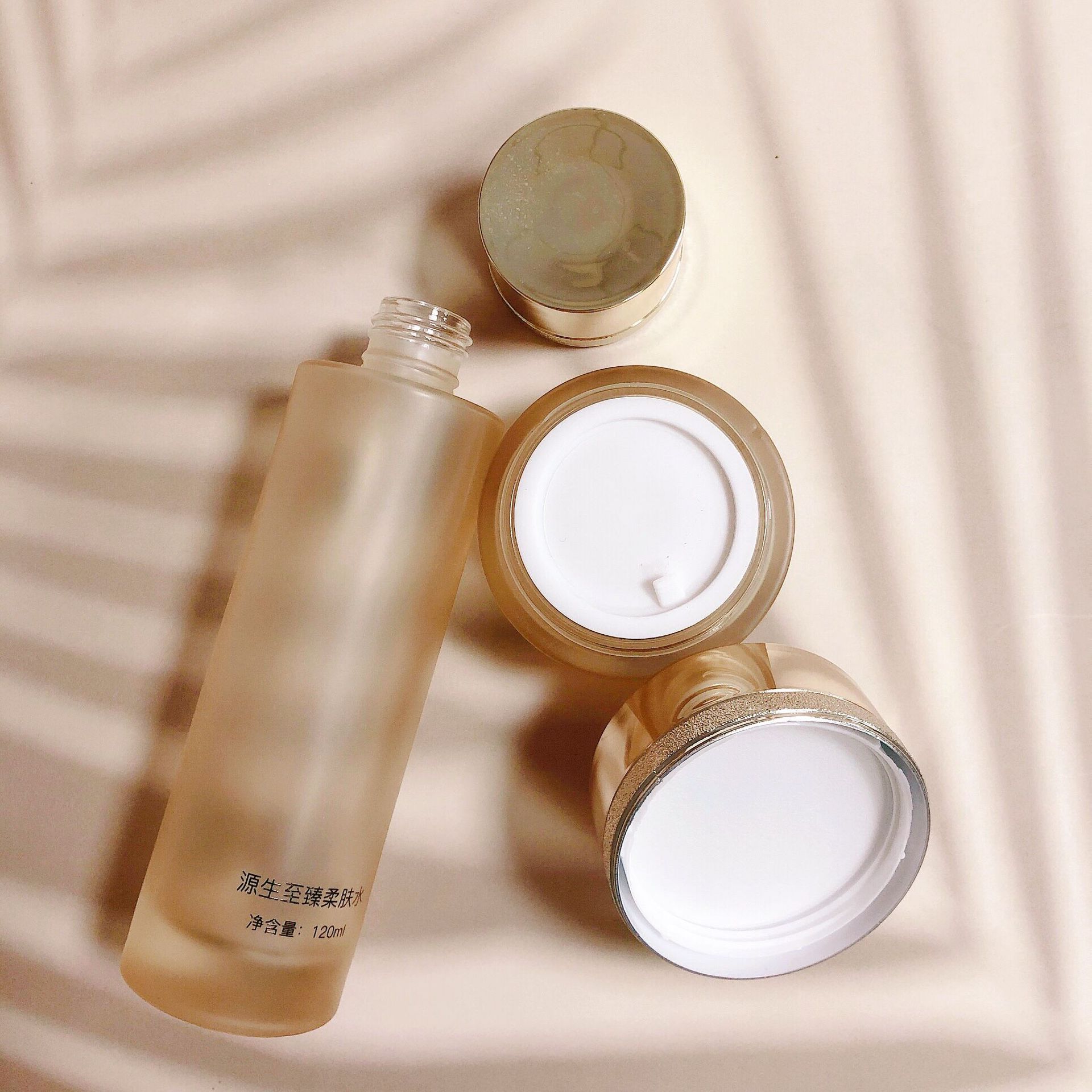 Productos para el cuidado de la piel, maquillaje, botella de vidrio esmerilado, botella de loción de 100 ml, esencia de 40 ml, base líquida, botella de crema de 50 g