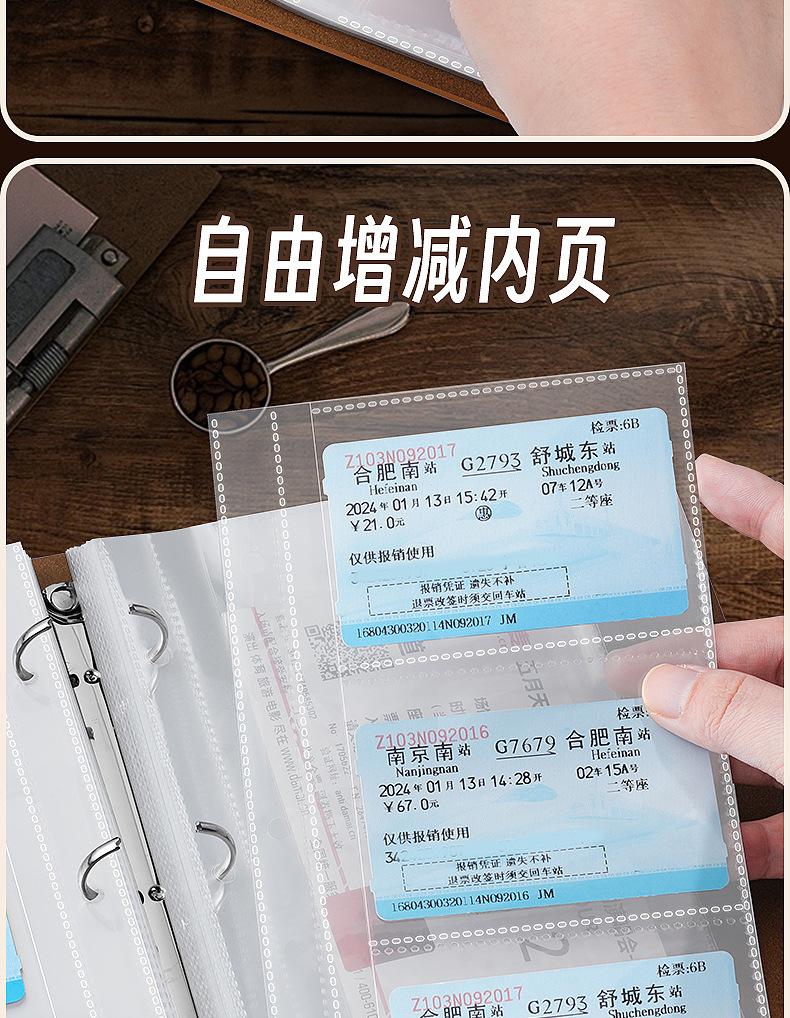 Libro de cobro de facturas, libro de hojas sueltas para guardar billetes de láser, postales, películas, libro de cobro de billetes de tren de alta velocidad, álbum de viajes