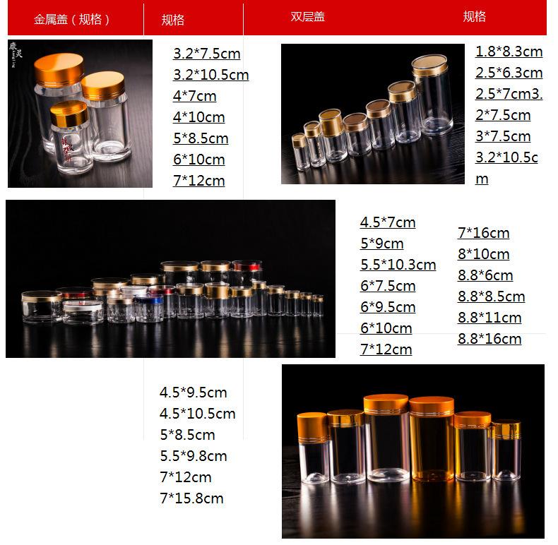 Botella de acrílico en stock, embalaje universal, botella vacía, 500 ml de polvo de esporas de miel, 250 g de tableta, botella para el cuidado de la salud.