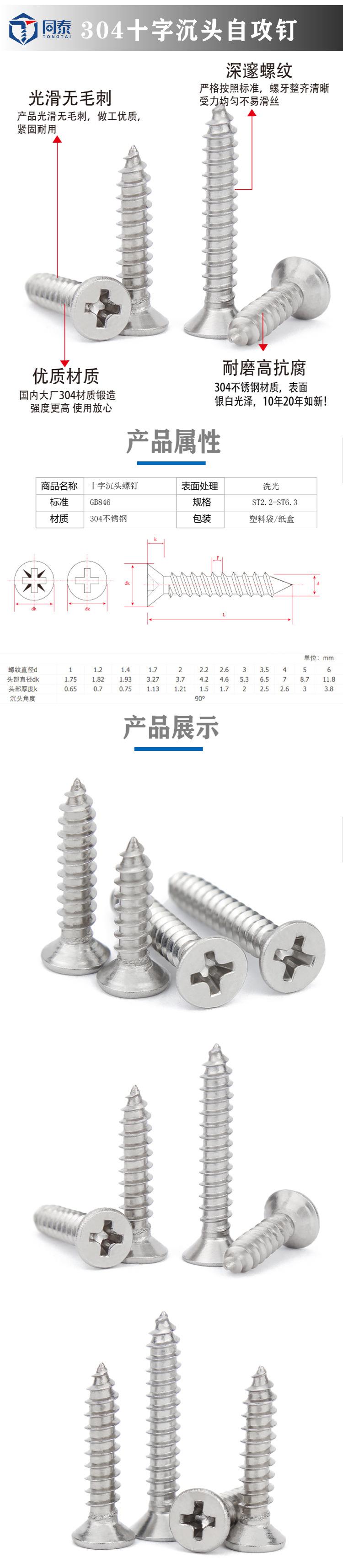 Tornillos autorroscantes de acero inoxidable 304 GB846 cabeza plana empotrada cruz fabricantes tornillos autorroscantes de cabeza avellanada cruz