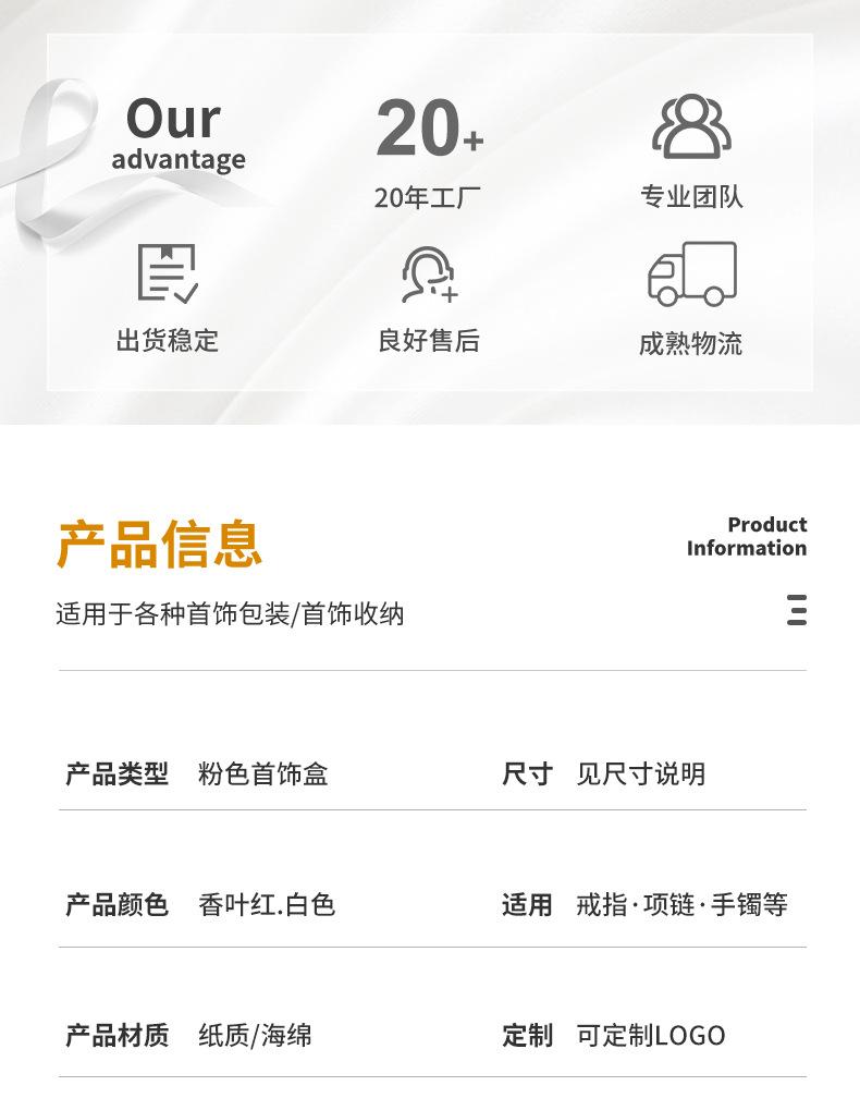 Pink*6*6*3.5 ring box, Pink*7*8*3.5 necklace box, Pink*9*9*3.5 bracelet box, Pink*22*5.5*3.5 long box, Pink*16...