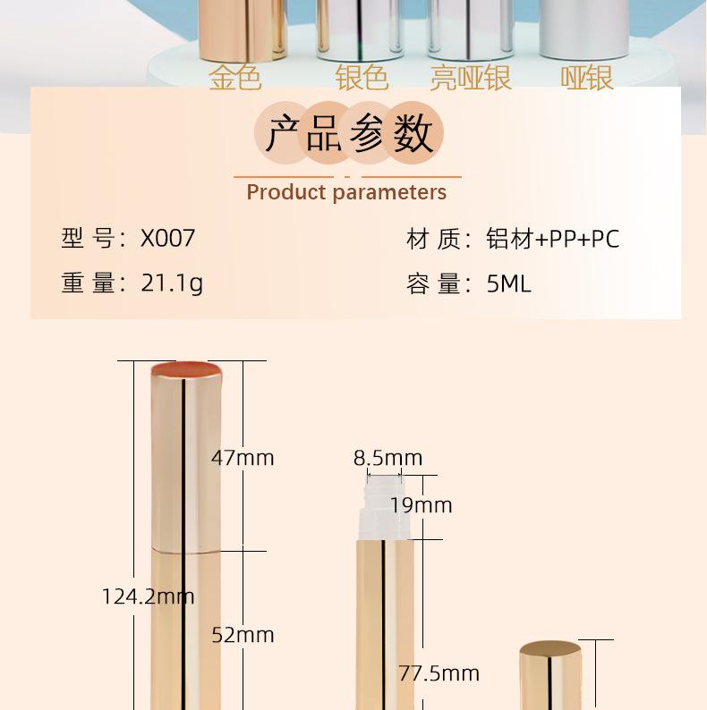 Tubo de brillo labial dorado y plateado de 5 ml, lápiz labial giratorio, lápiz labial cosmético, paquete de lápiz corrector, tubo líquido, punto