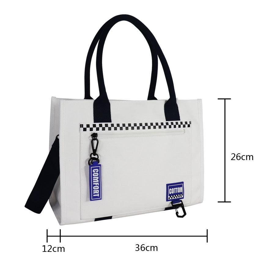 ![]() Bolsa de lona para estudiantes transfronterizos con impresión de logotipo, bolsa en blanco para clases de capacitación, bolsa de lona publicitaria, bolso de mano para mujer