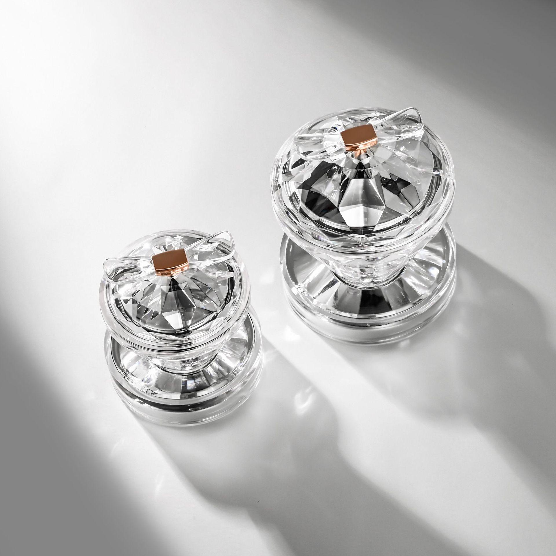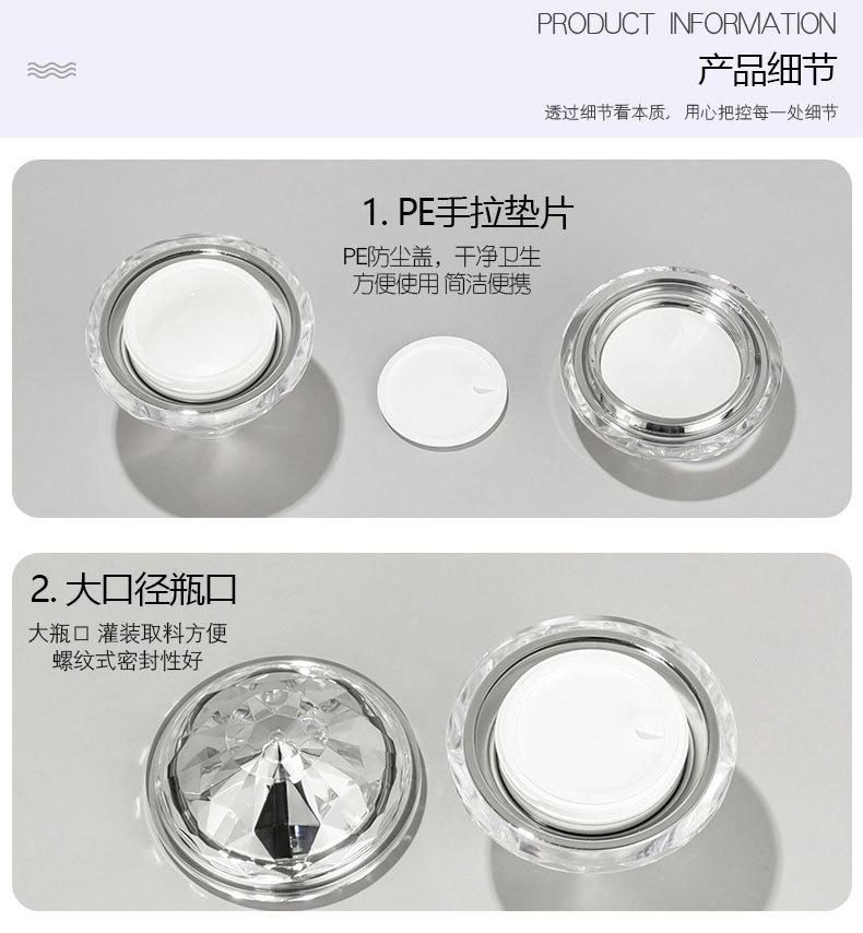 En stock, frasco de crema acrílica de alta calidad, crema de maquillaje para dama, crema para ojos embotellada, crema de esencia hidratante, materiales de embalaje.