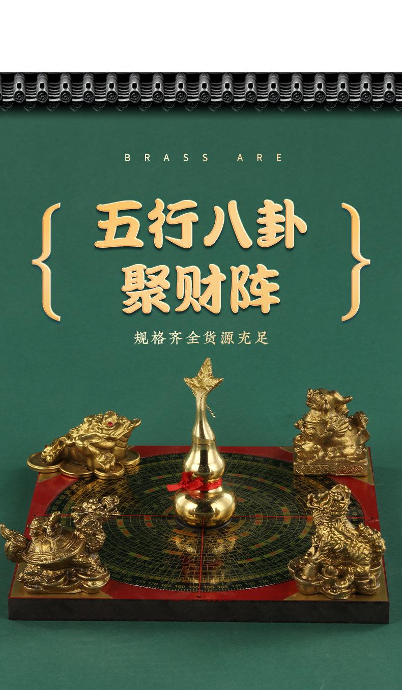 Decoración de matriz de cinco elementos de latón, calabaza de dinero de cobre, tortuga dragón, brújula Kirin, matriz de ocho diagramas de cinco elementos, decoración del hogar
